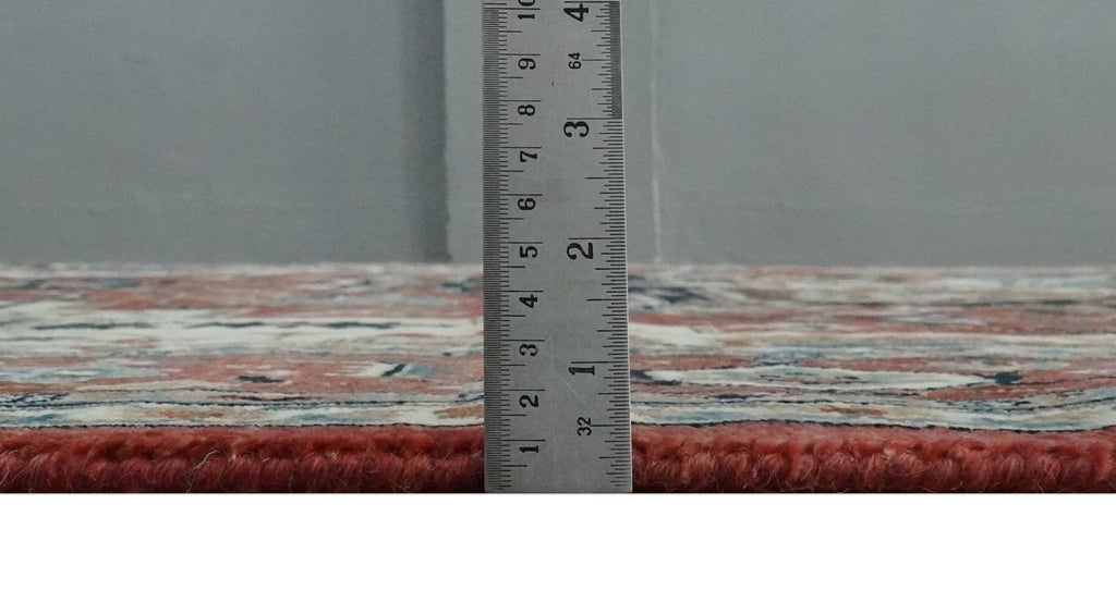 This specific rug is made in India, in the city of Bhadohi. Bhadohi is one of the biggest rug manufacturing cities. Carpet weaving in the region dates back to the 16th century during the reign of Akbar. The skilled artisans of Bhadohi have been carrying the tradition of rug-making for centuries.