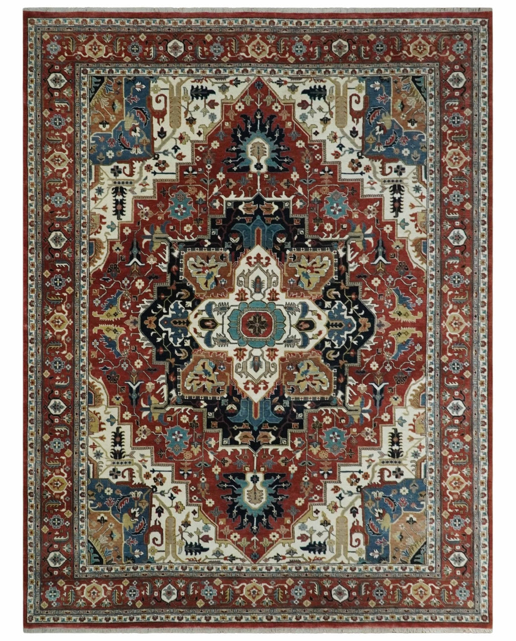 This Traditional Floral Premium Look Ivory, Black and Brown Hand Knotted 9x12 Serapi Wool Rug is a timeless classic. Crafted from soft, durable wool, its intricate, hand knotted design brings an elegance to any room. Classically sized at 9x12, it's perfect for larger living spaces.