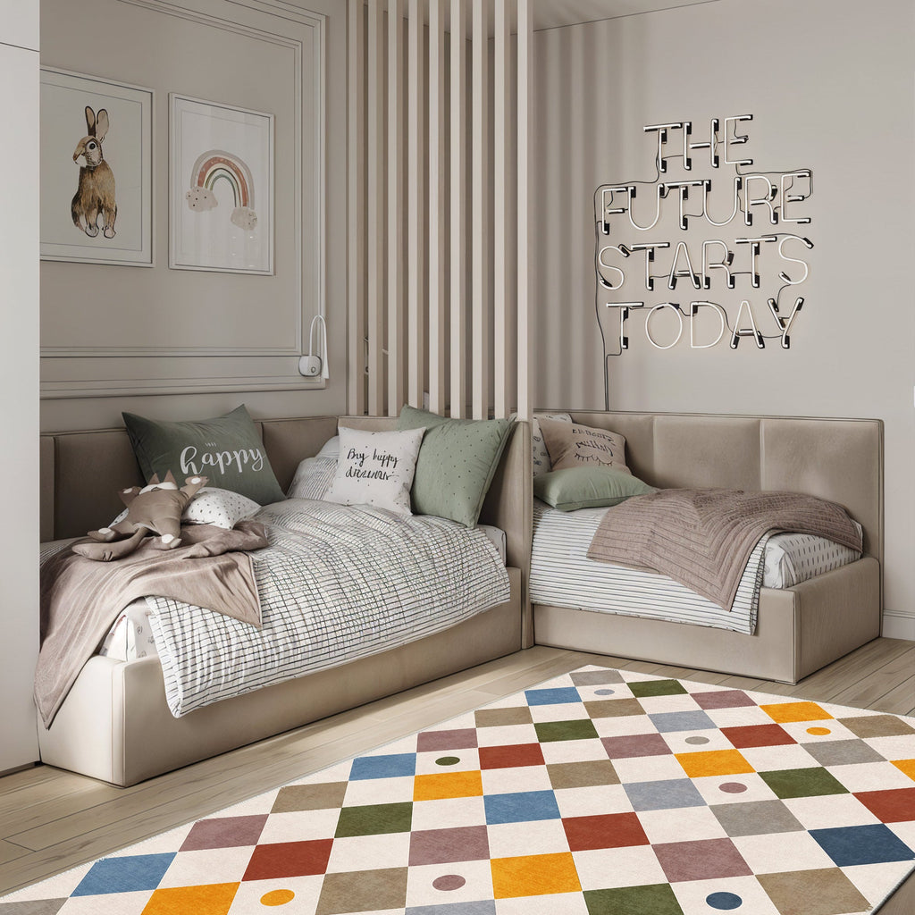 KID AND PET FRIENDLY DESIGN: Our family-friendly rugs feature a design that is perfect for households with children and pets. These rugs are resistant to stains and water, making them highly suitable for everyday use. With their low-pile and non-slip construction, they provide a safe environment for kids to play and are durable against pet scratches. Ideal for individuals with sensitive skin or allergies, these rugs prevent dust buildup and are easy to clean.