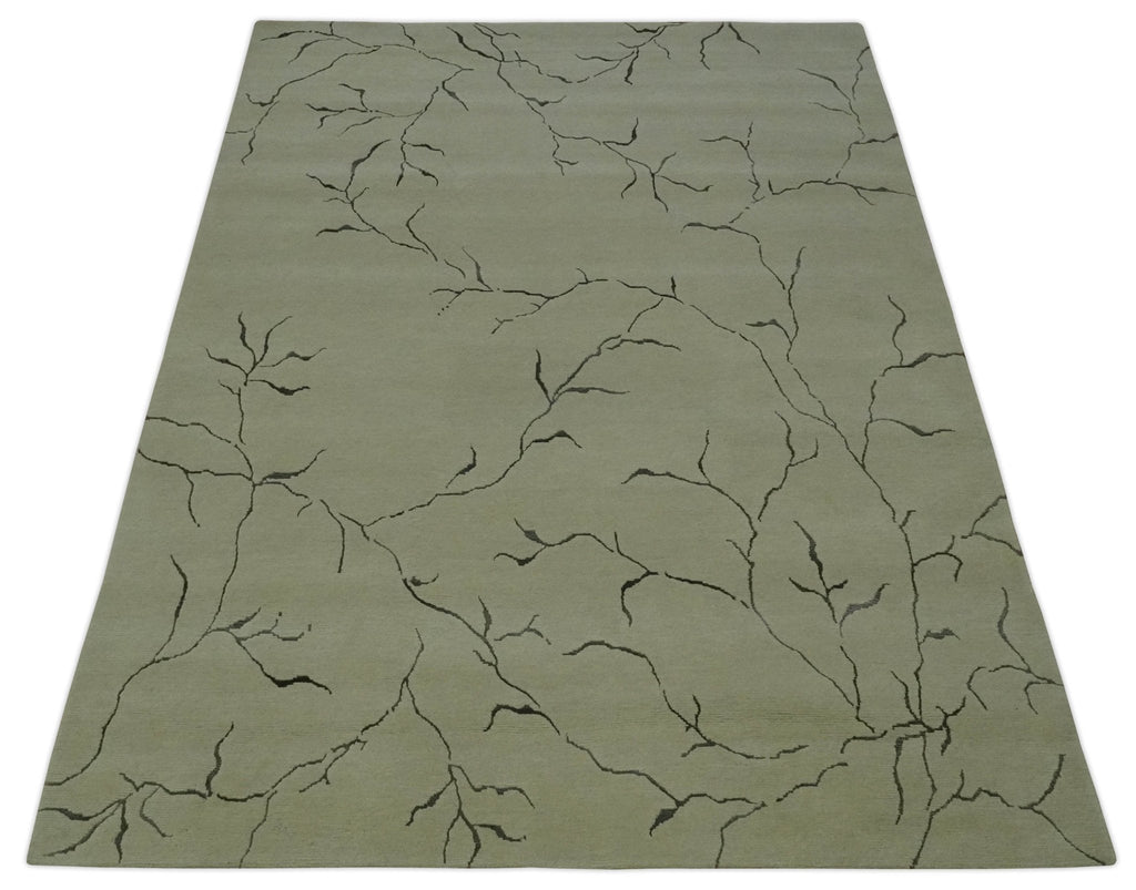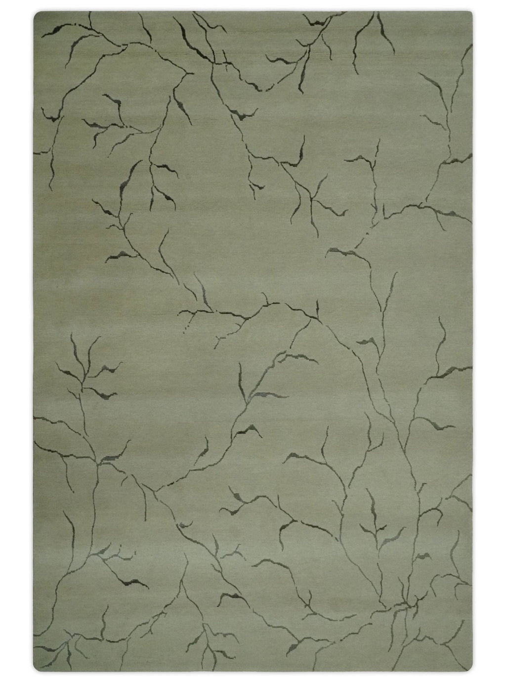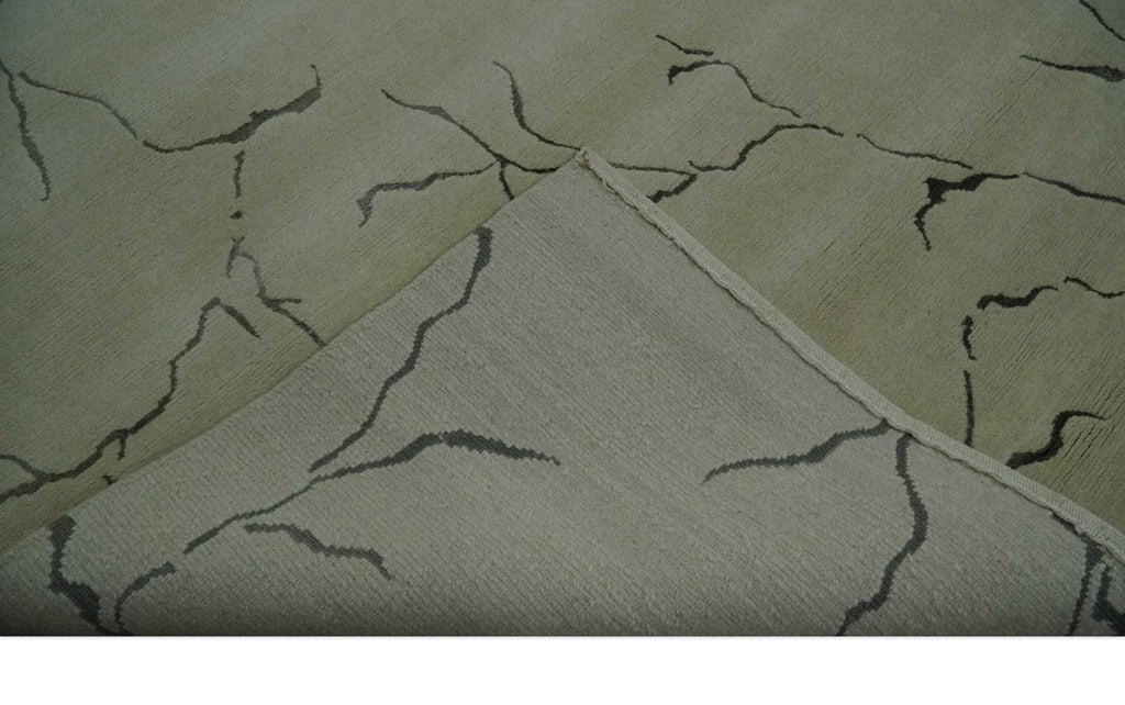 This hand knotted rug boasts a unique crack design in a neutral beige and charcoal color palette. Made with a blend of wool and art silk, it offers both durability and softness underfoot. Measuring 6x9, it is perfect for adding a touch of style and comfort to any room.