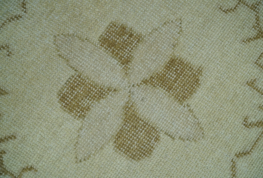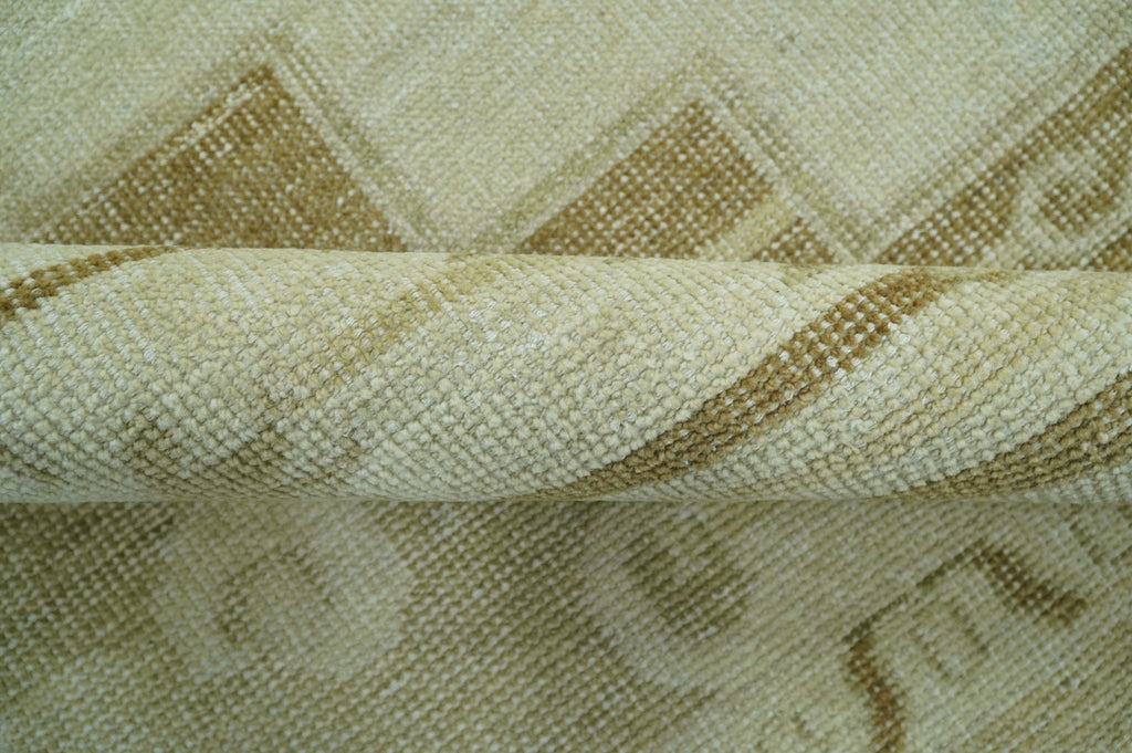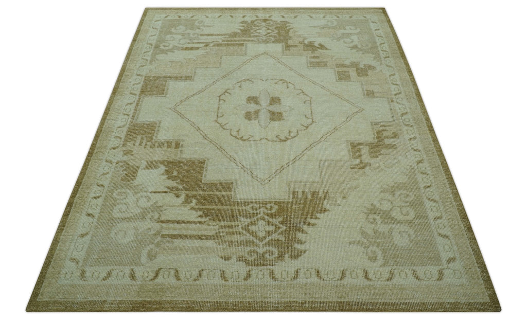 Beige and Olive 8x10 Hand Knotted Traditional Low Pile wool area rug