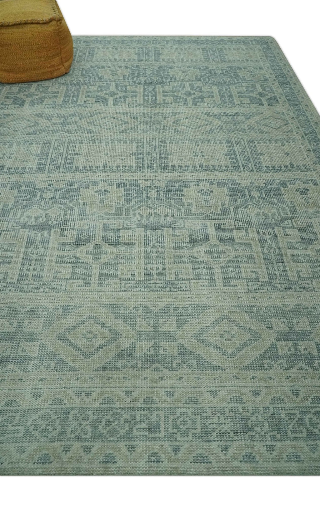 Expertly crafted and uniquely designed, our 8x10 Blue, Beige and Silver Hand Knotted Geometrical Design wool area rug adds a touch of elegance and sophistication to any space. Made with high-quality wool, its intricate geometric pattern offers both style and comfort. Customize your space with this luxurious rug today.