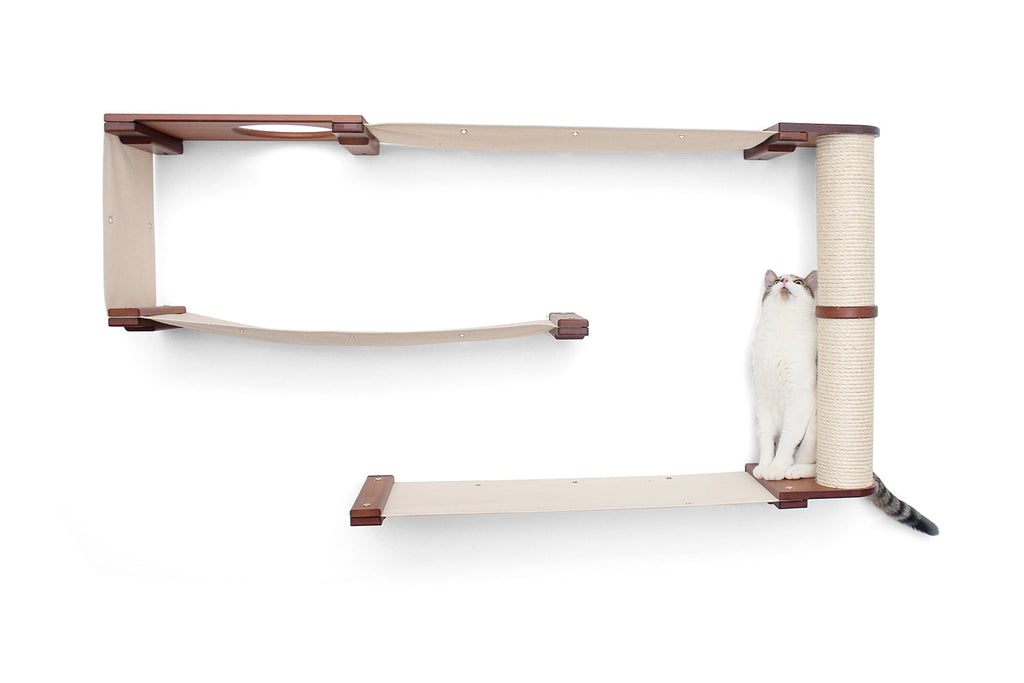 The Cat Wall Maze is great for giving your cat a place to exercise their brain and body. The puzzle-like layout and included Escape Hatch create a thought-provoking environment. The optional Scratching Pole will provide your cat with a positive, healthy outlet to use their claws.