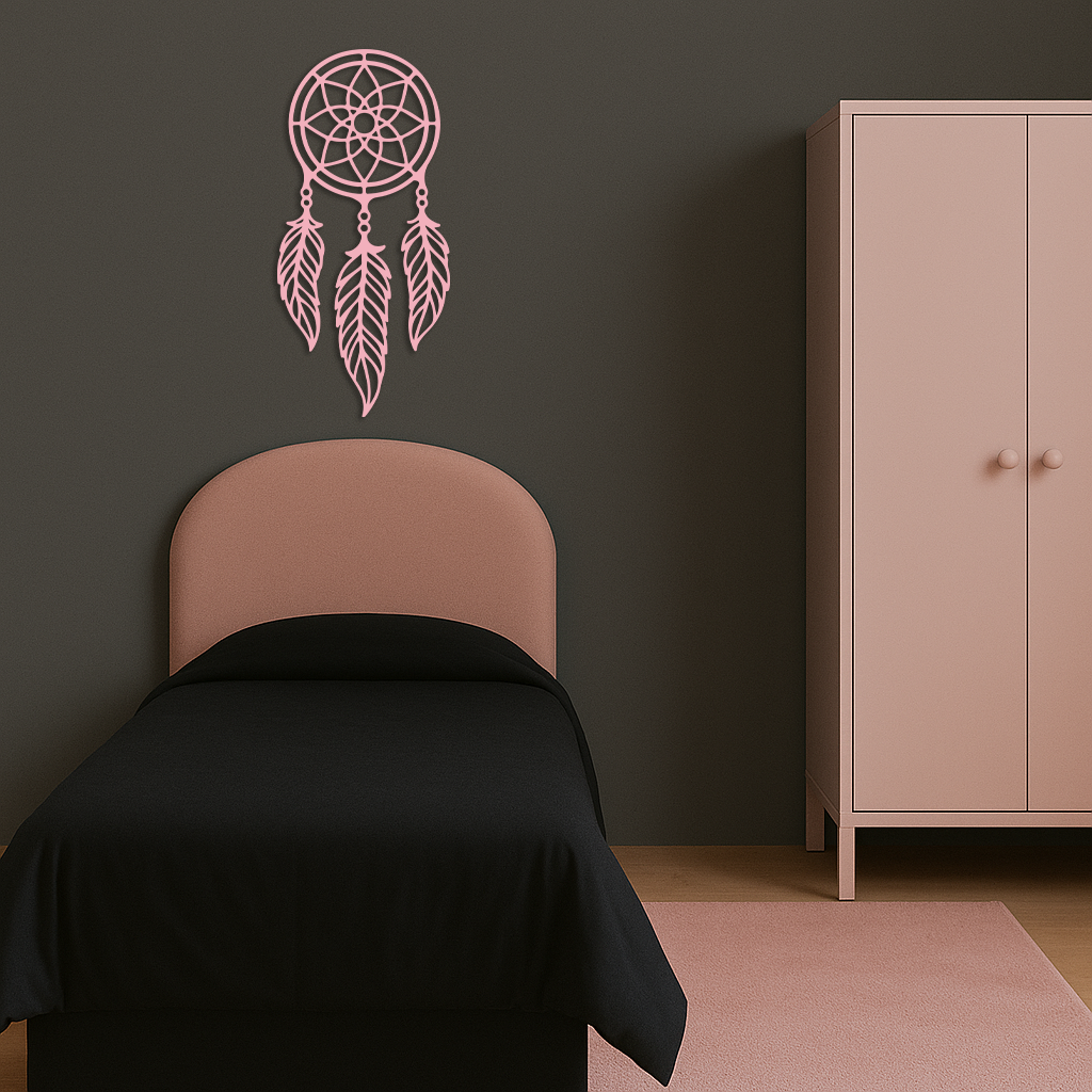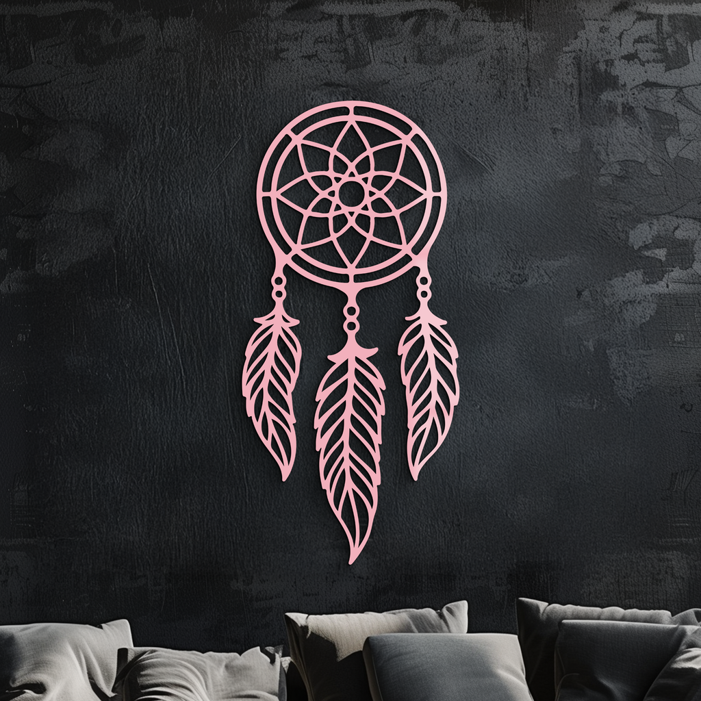 Bring a touch of bohemian elegance to your space with the Dreamcatcher Silhouette Metal Wall Art. Designed with intricate circular patterns and three hanging feathers, this unique piece symbolizes protection and positive energy. Crafted from high-quality metal and finished with a durable powder coating, it makes the perfect addition to bedrooms, living rooms, or meditation spaces.