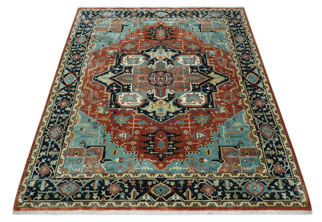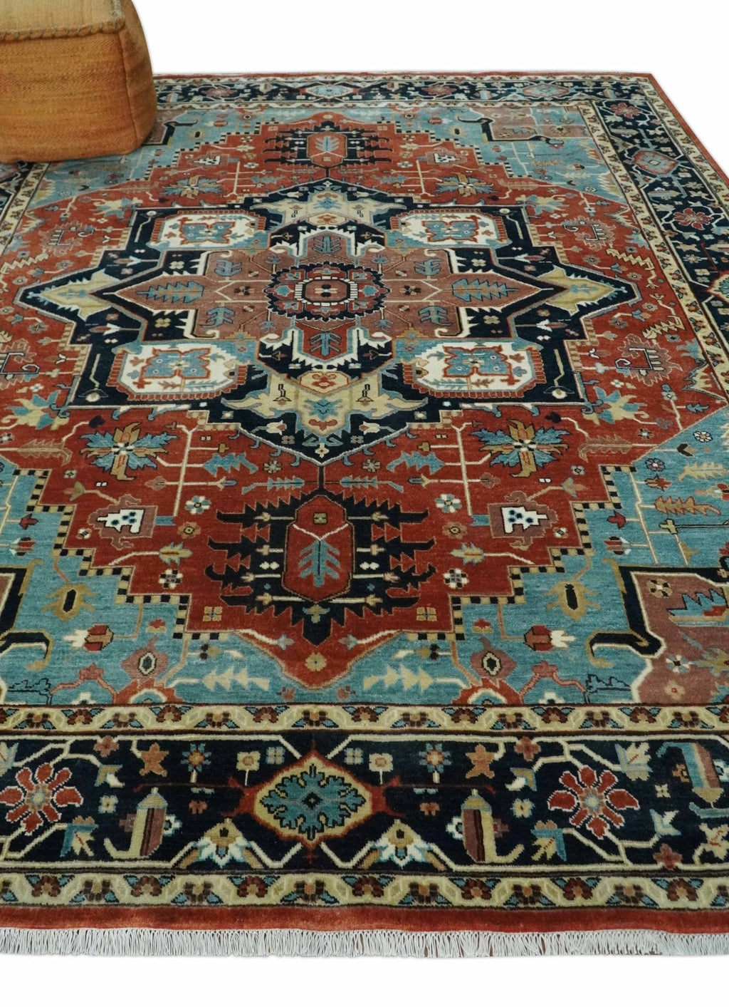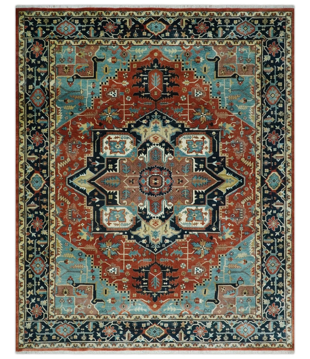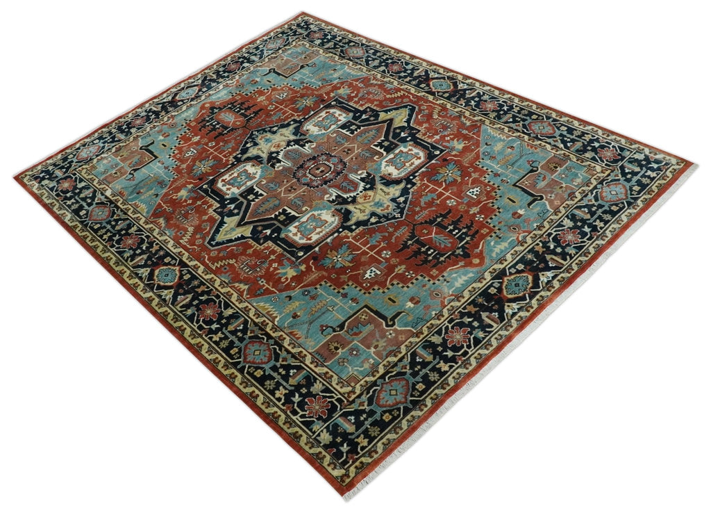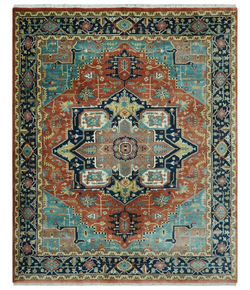 This traditional, 8x10 wool area rug brings a premium with its intricate hand-knotted detail. The rug features a rich combination of brown, aqua, and black shades to infuse warmth and elegance into your home. Perfect for a timeless, sophisticated look.