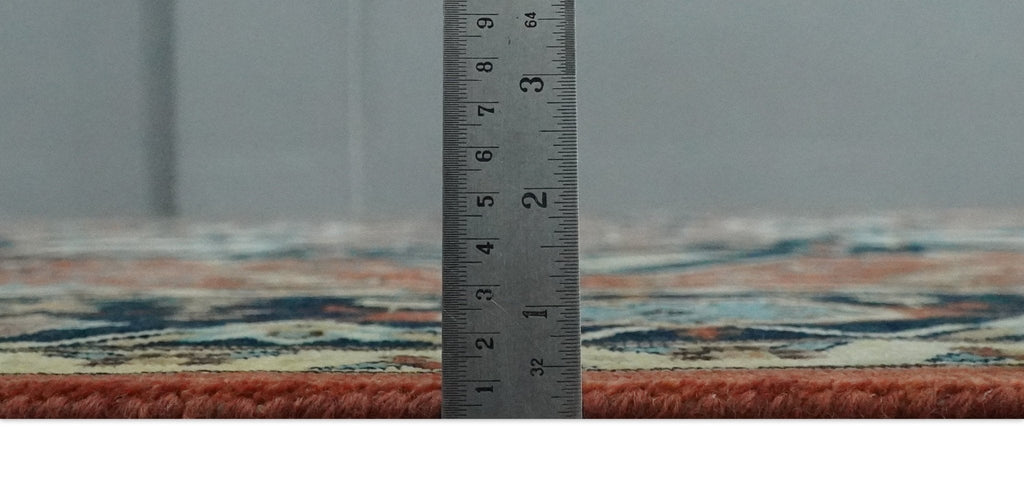 This specific rug is made in India, in the city of Bhadohi. Bhadohi is one of the biggest rug manufacturing cities. Carpet weaving in the region dates back to the 16th century during the reign of Akbar. The skilled artisans of Bhadohi have been carrying the tradition of rug-making for centuries.