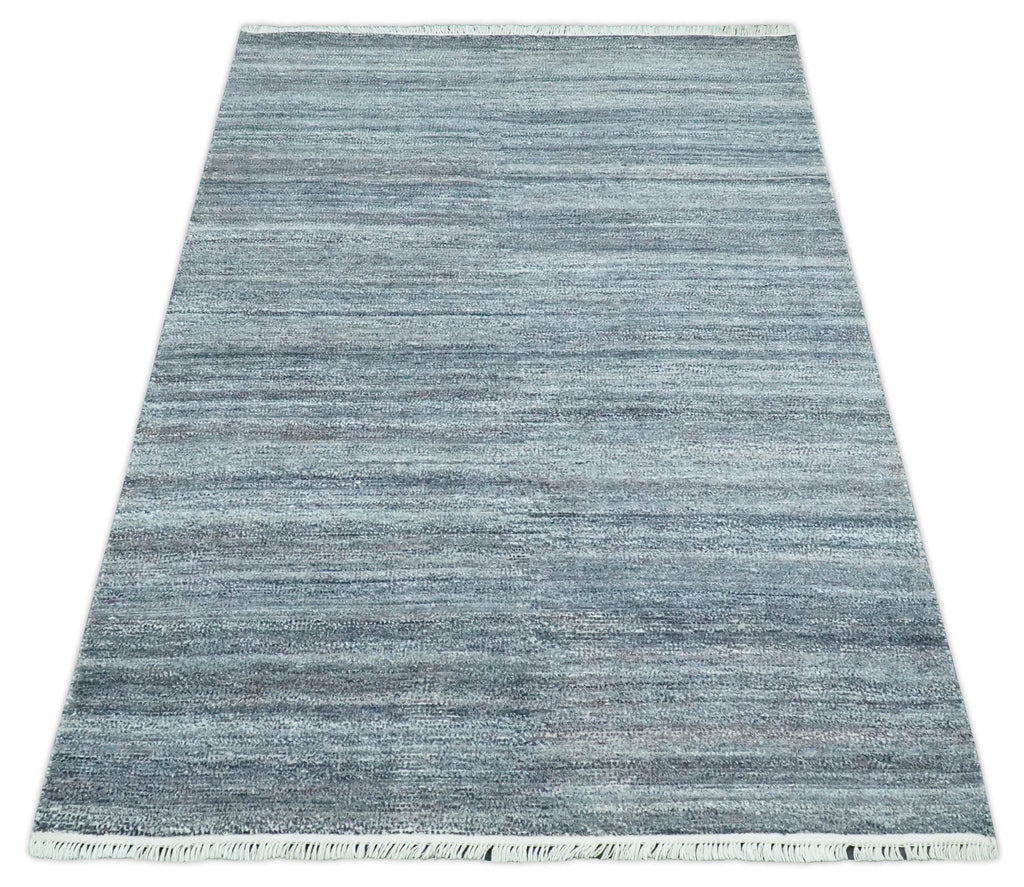 This modern abstract rug features a sophisticated blend of colors, including gray, charcoal, and silver. Made from pet yarn, it offers both durability and softness. Measuring 5x8, it is the perfect size for any living space. Elevate your décor with this elegant Dari area rug.