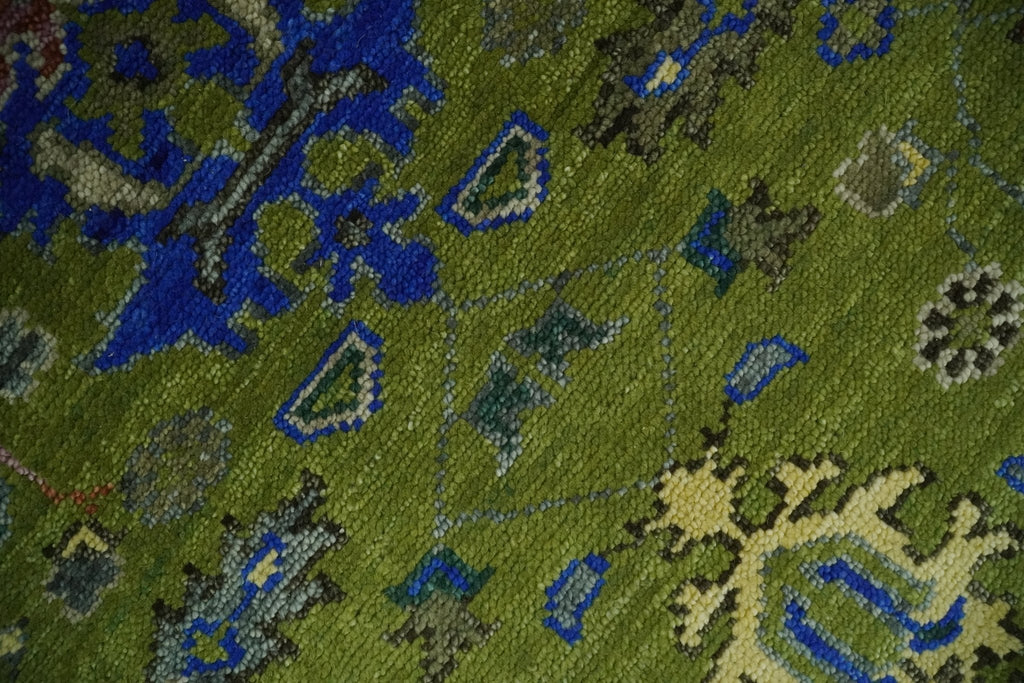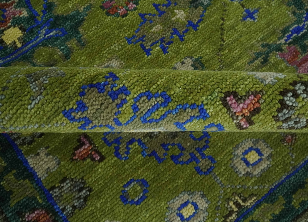 Expertly hand-knotted from high-quality wool, this traditional Oushak area rug features a stunning blend of green, blue, and brown hues. Its 8x10 size makes it ideal for adding a touch of elegance to any room. Experience luxurious comfort and timeless style with this beautifully crafted rug.