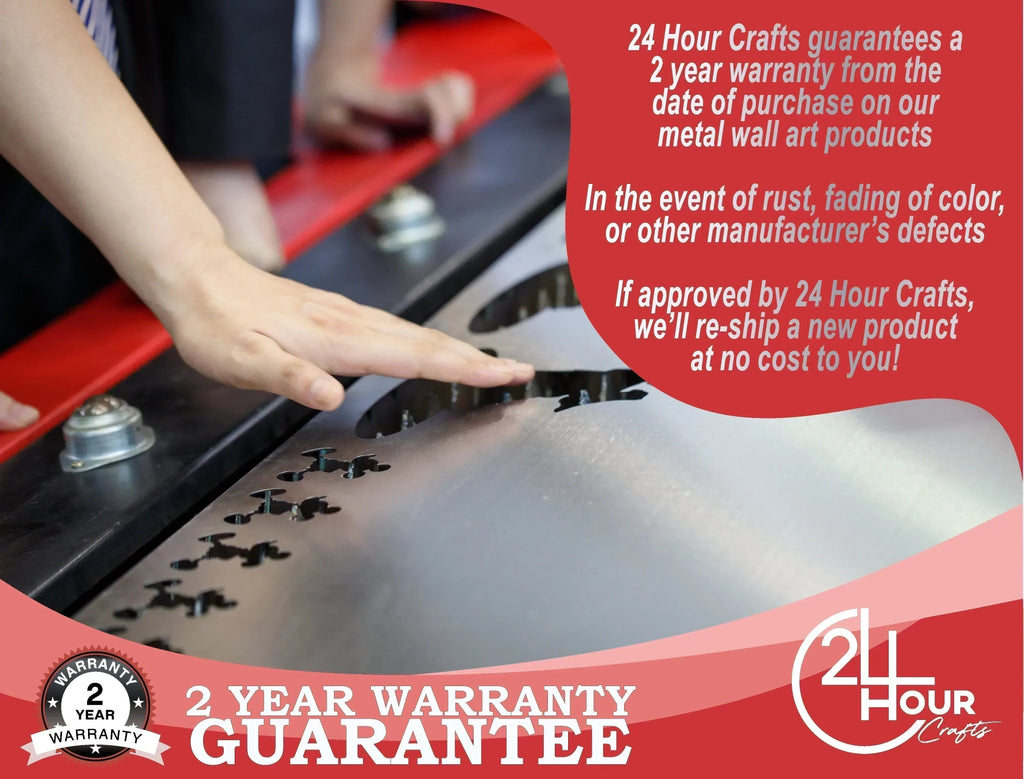 This metal sign is made from 16 gauge steel and powder coated to last a lifetime. Sizes range from 12 inches up to 46 inches.