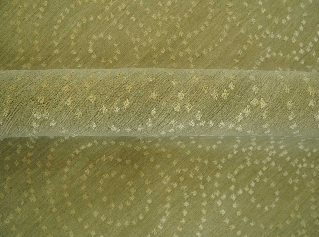 This exquisite rug showcases an elegant olive green backdrop adorned with intricate, concentric circle patterns in subtle beige. The design is both sophisticated and understated, offering a mesmerizing visual rhythm. Its texture is plush and luxurious, inviting touch and adding warmth to any room. The artful interplay of tones and the delicate dotted motifs create a timeless, refined aesthetic, ensuring it enhances the ambiance of upscale home interiors with a touch of modern elegance.