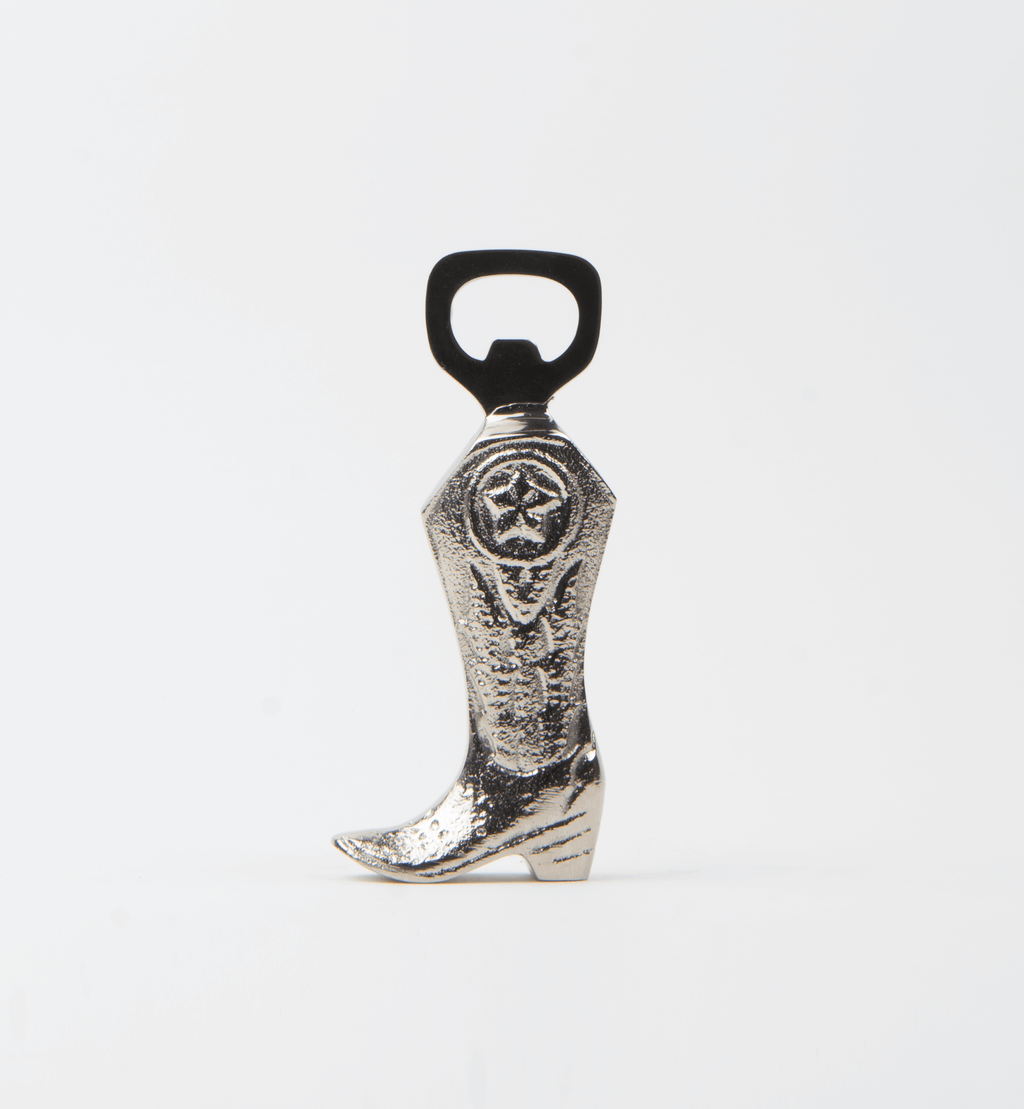 A nickel etched cowboy boot bottle opener is a unique and stylish way to open your favorite beverages. The bottle opener is made of nickel, which is a durable and corrosion-resistant metal. The boot design is etched into the nickel, which gives the bottle opener a Western flair. The bottle opener is easy to use. Simply place the bottle opener over the cap of your beverage and push down. The cap will pop off easily. The bottle opener is also easy to grip, thanks to the boot design. The nickel etched cowboy boot bottle opener is a great gift for any cowboy or cowgirl. It is also a great addition to any home bar or man cave. 6" | Handmade using sustainable materials | Made in India