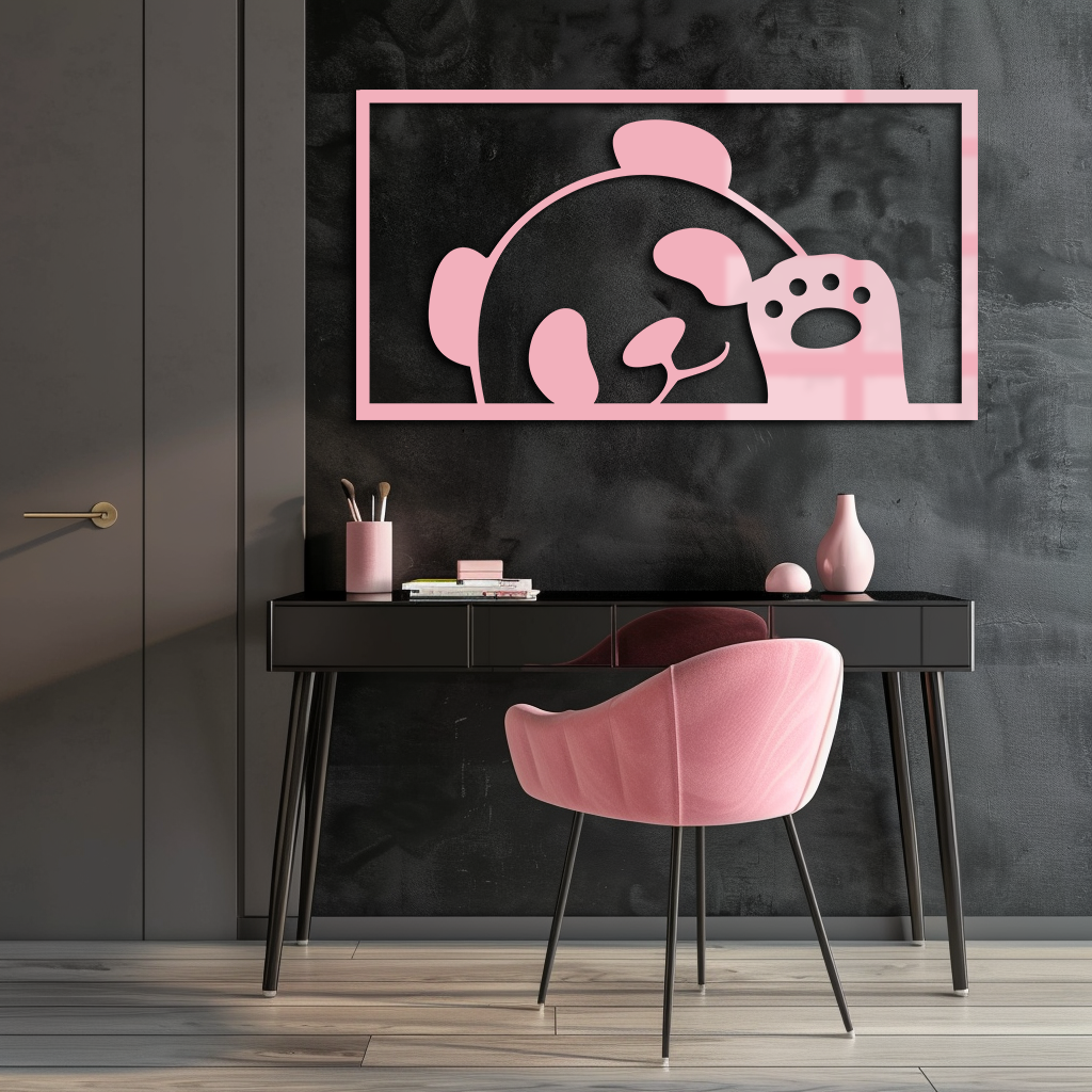 Add a touch of playfulness and charm to your home with this Pink Panda Silhouette Metal Wall Art. Crafted from durable metal and finished in a vivid pink color, this design features an adorable panda peeking out, making it a delightful decoration for living rooms, bedrooms, nurseries, or creative spaces. Perfect as a gift for animal lovers or as a unique wall accent for your own space.