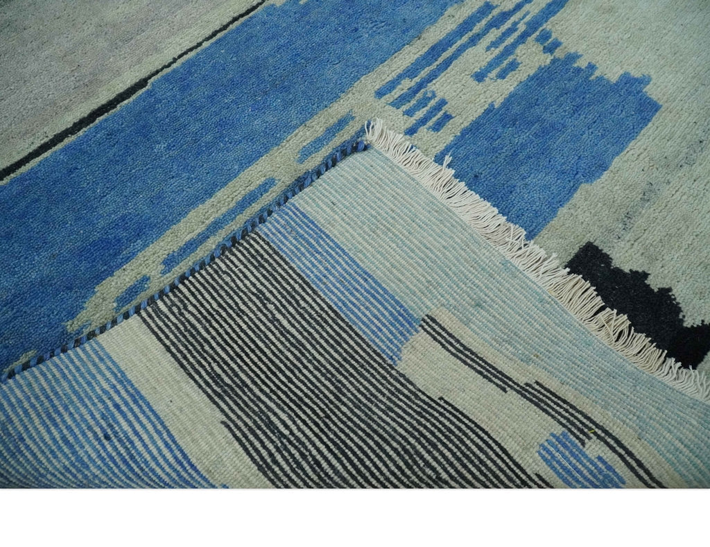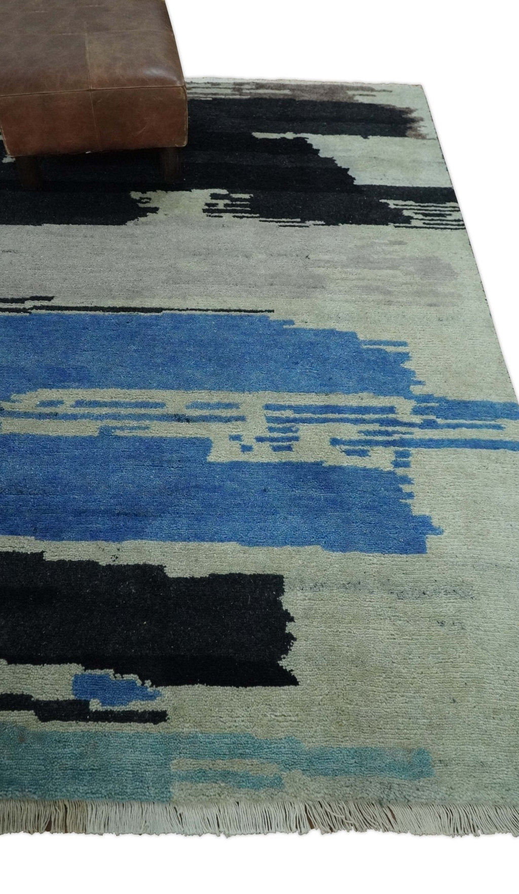 Experience the perfect blend of modern and abstract design with our Silver, Ivory, Blue, and Charcoal Hand loom Wool Area Rug. Hand loomed with 100% wool, this 4x6 rug adds a touch of sophistication to any room. Its unique blend of colors and textures make it a statement piece in your home.