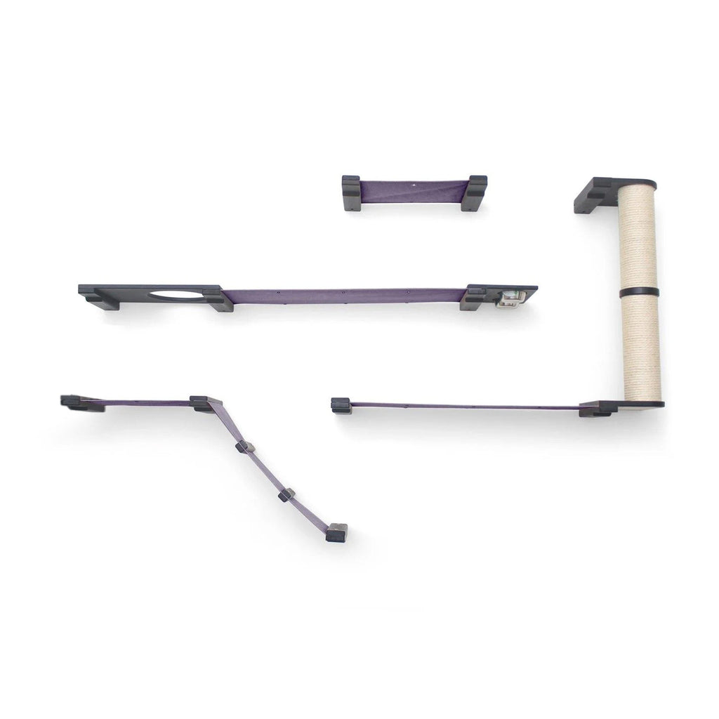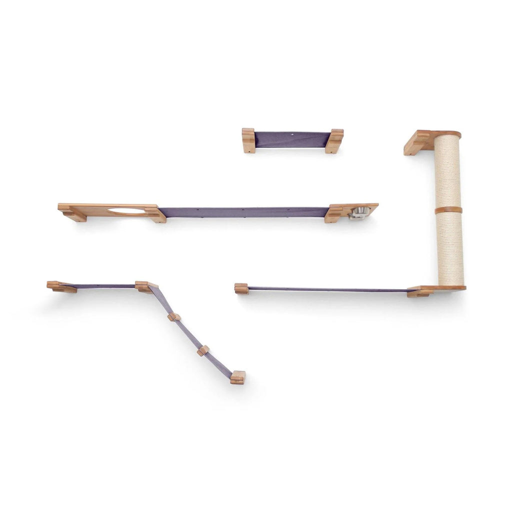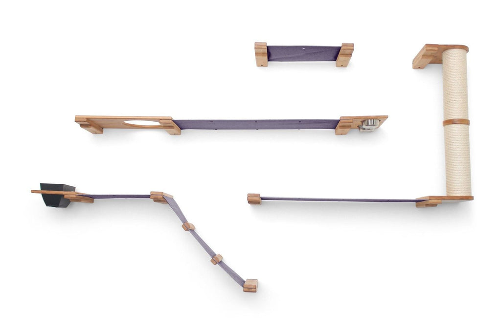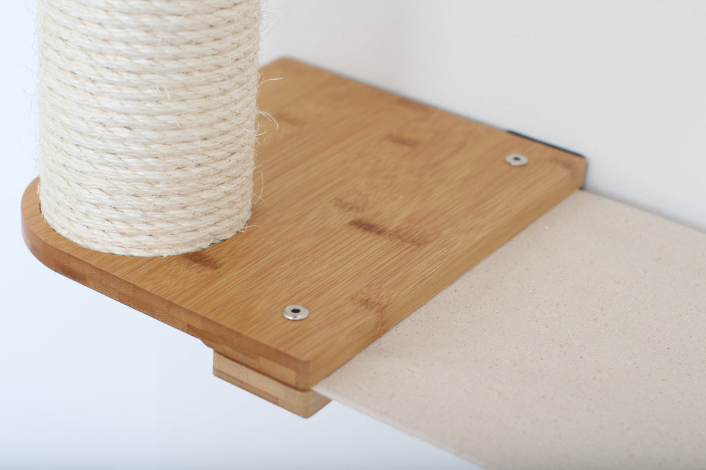 The Bunker is a wider layout that offers a variety of activities for your cats. Your cats certainly won’t be bored with the Bunker! This Condo offers plenty of room for multiple cats to explore. Your cats can express their natural instinct by foraging for the contents of the Feeder and Planter. After chasing each other up the ramp and Scratching Pole, they can snuggle up on one of the many fabric Hammocks for a nap.