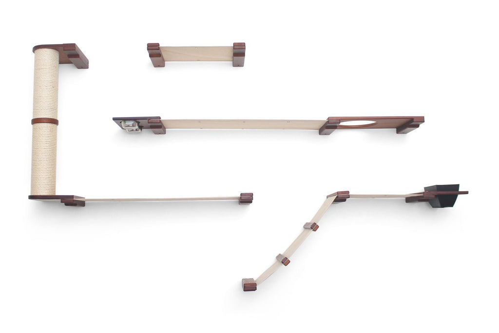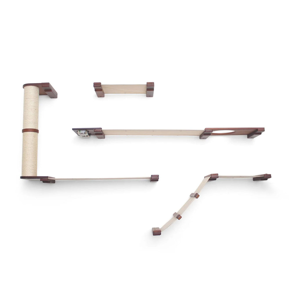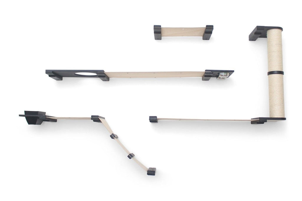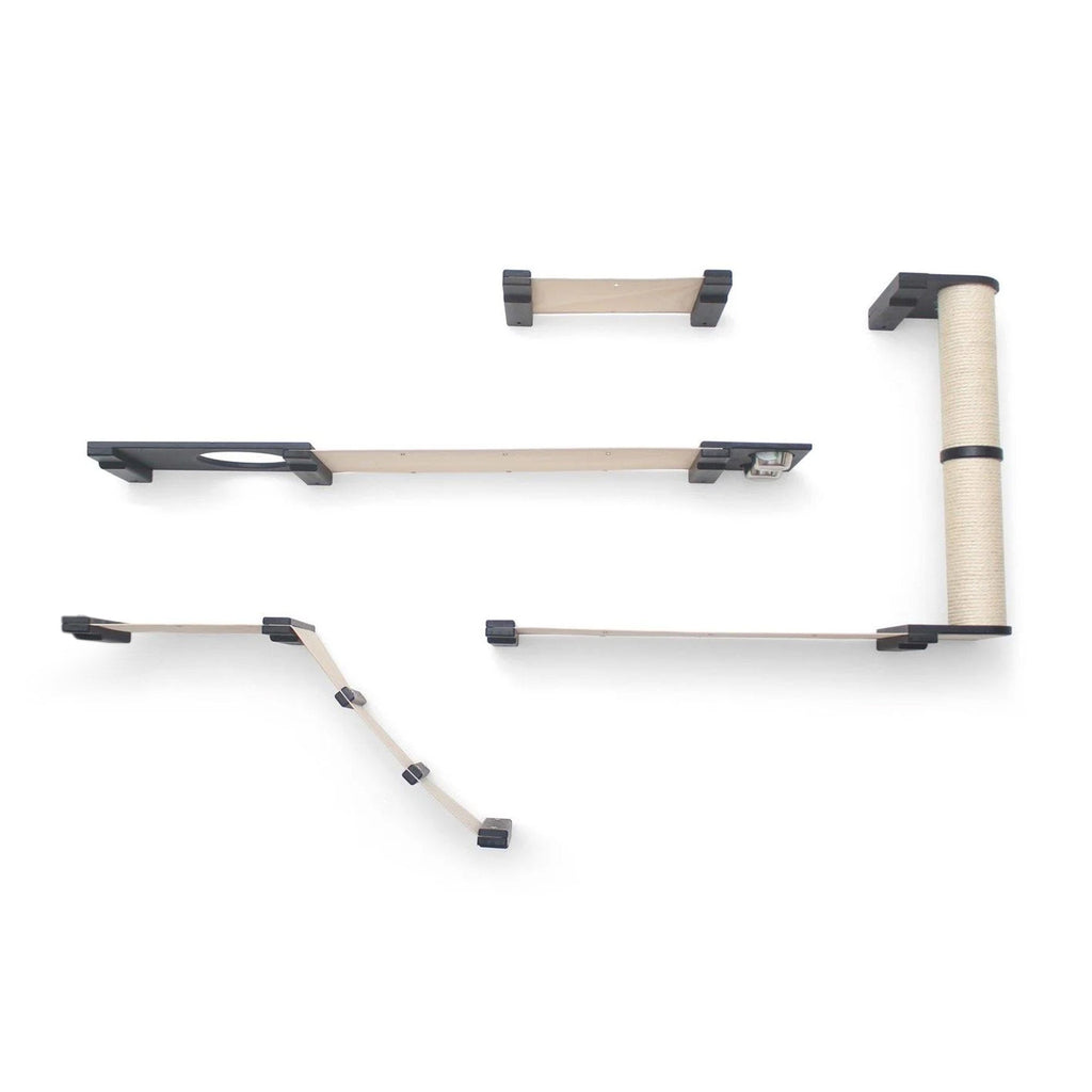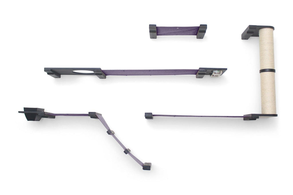 The Bunker is a wider layout that offers a variety of activities for your cats. Your cats certainly won’t be bored with the Bunker! This Condo offers plenty of room for multiple cats to explore. Your cats can express their natural instinct by foraging for the contents of the Feeder and Planter. After chasing each other up the ramp and Scratching Pole, they can snuggle up on one of the many fabric Hammocks for a nap.