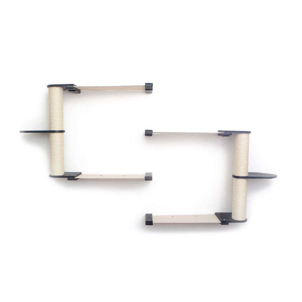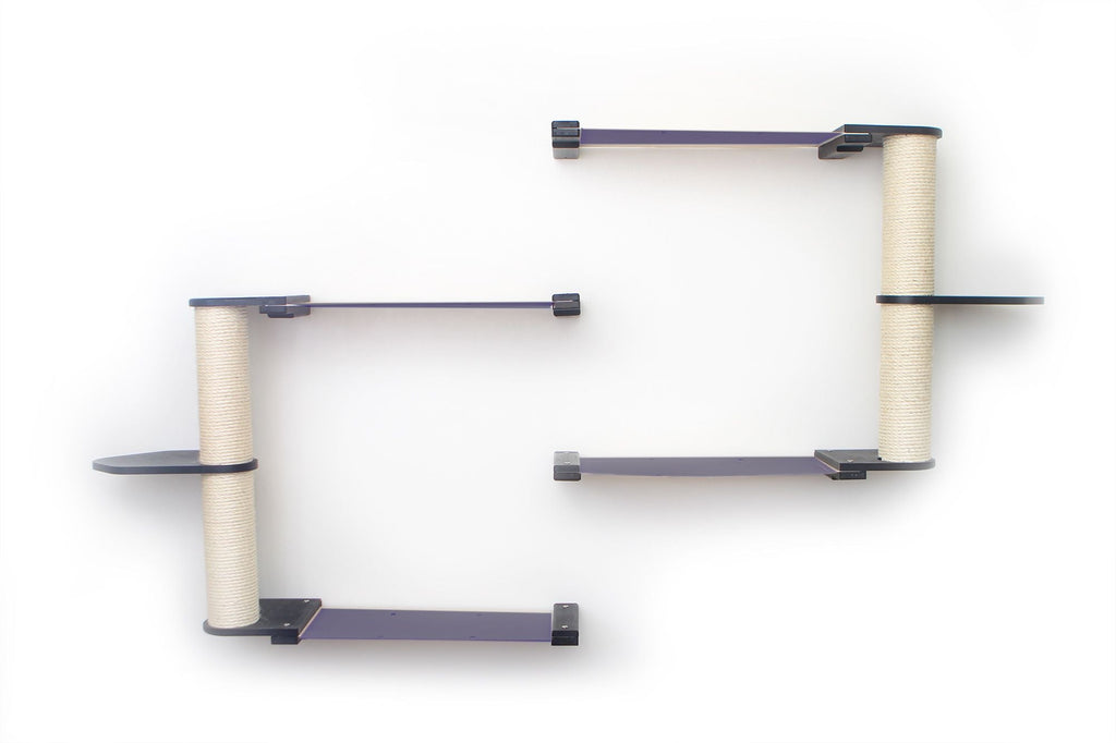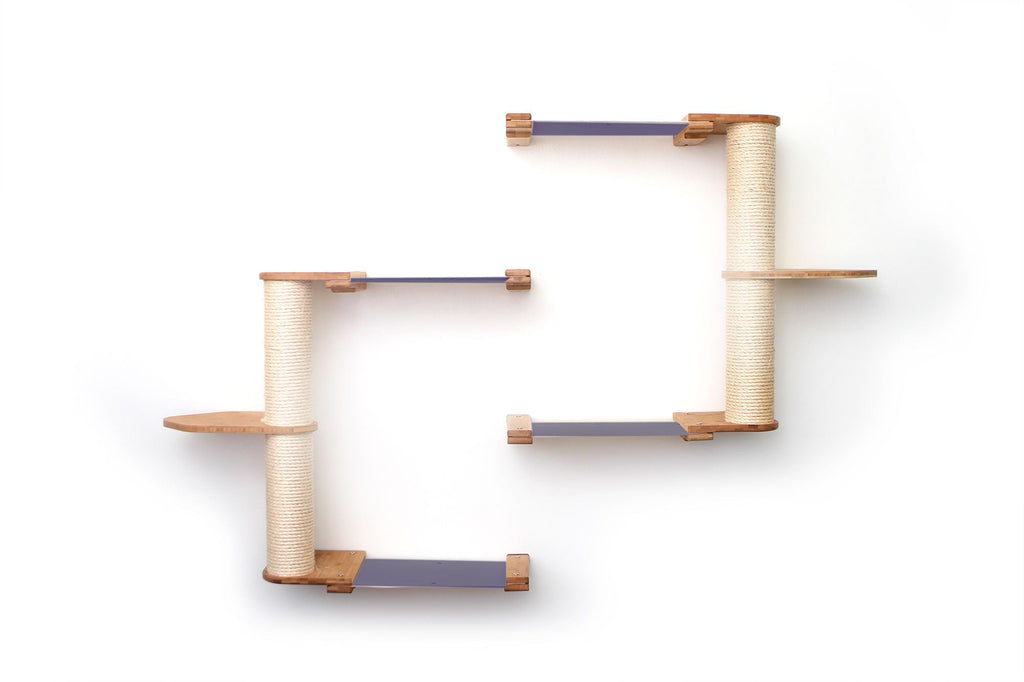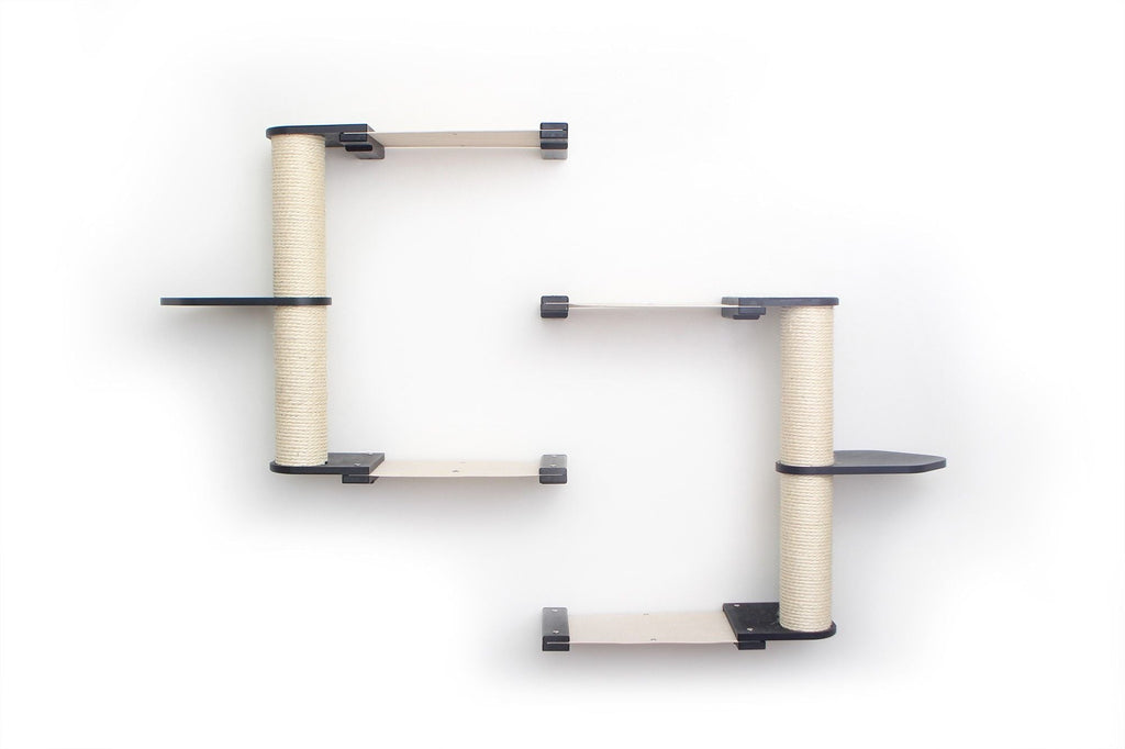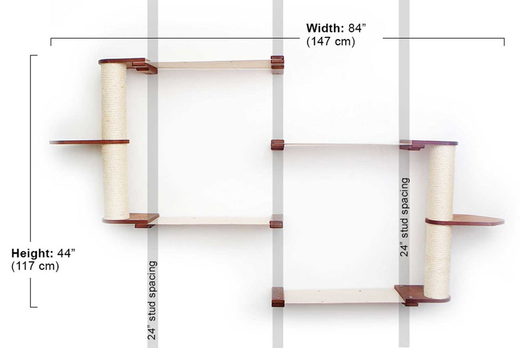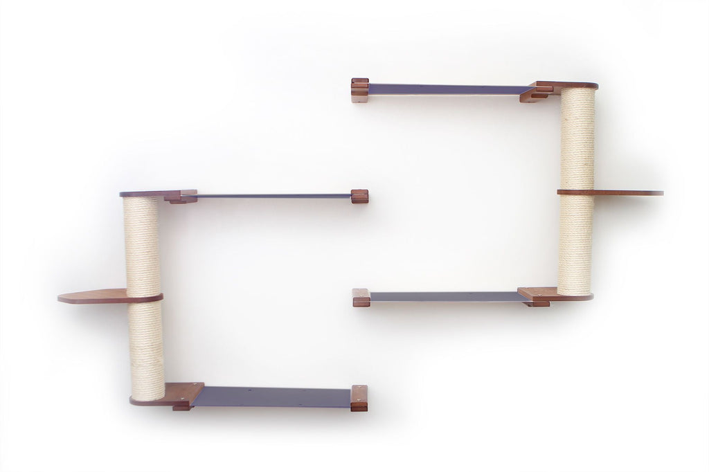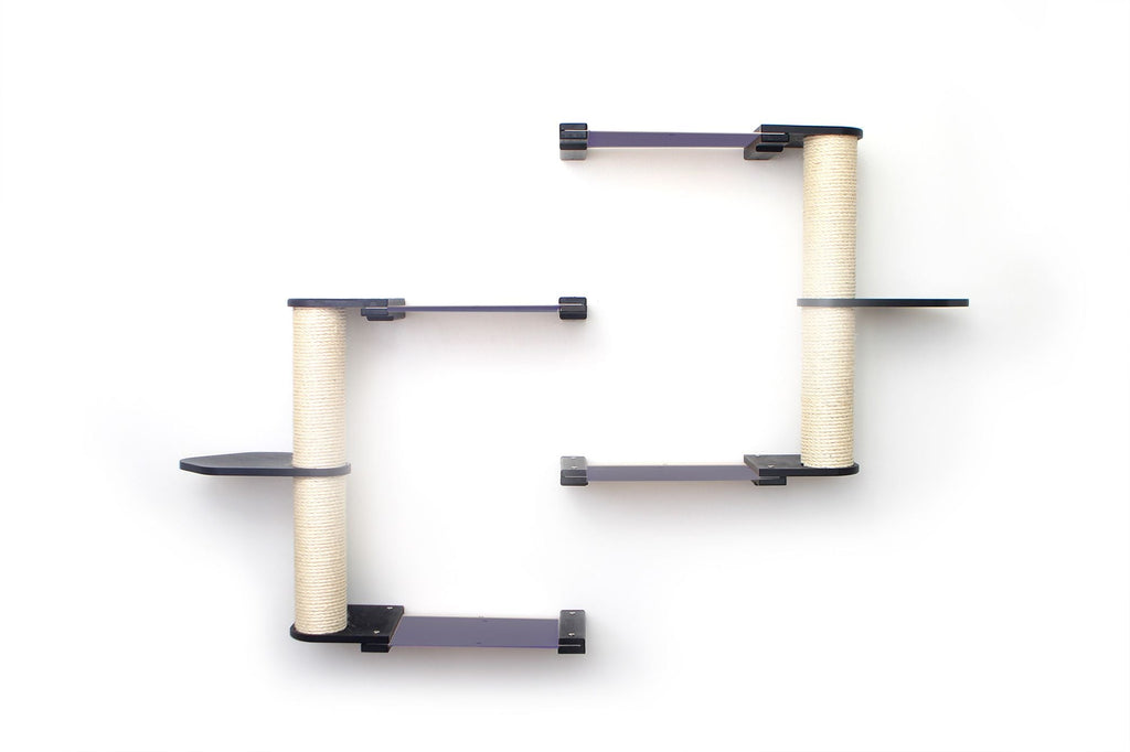 The Leaf Shelves can be flipped over for a different look. The Shelves can also be rotated around the Scratching Pole to reduce the width of your Condo or to develop a unique path for your cats.