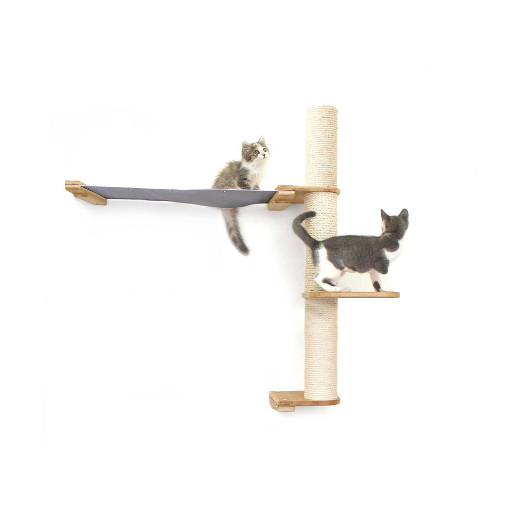 The Crow’s Nest is meant to be mounted high on the wall to provide your cat with a tall vantage point to look over their kingdom. Cats love to be up high, but for them to get the best spot in the house, they first need to climb to the top of the structure and get some much-needed exercise. We really like this structure because it’s pretty much an indoor tree that takes up very little horizontal space on the wall.
