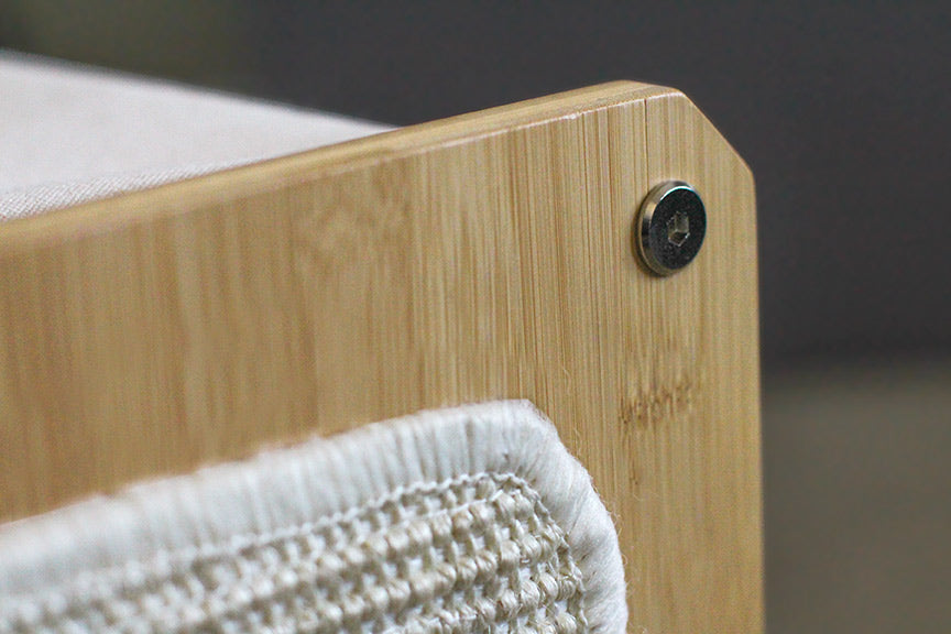 The bamboo panels have cut-out triangles that expand your cat’s view and work really well for playtime. They give cats a chance to practice their hunting skills with their favorite cat wand by hiding behind the panels and then popping out for a surprise attack through the window.