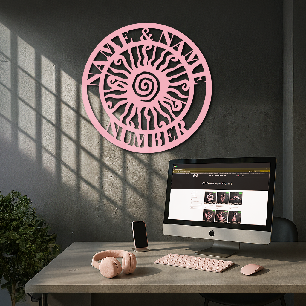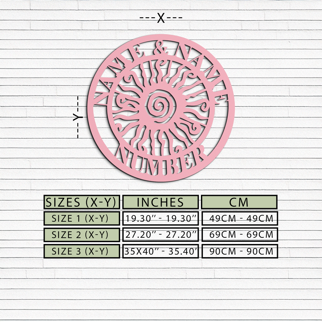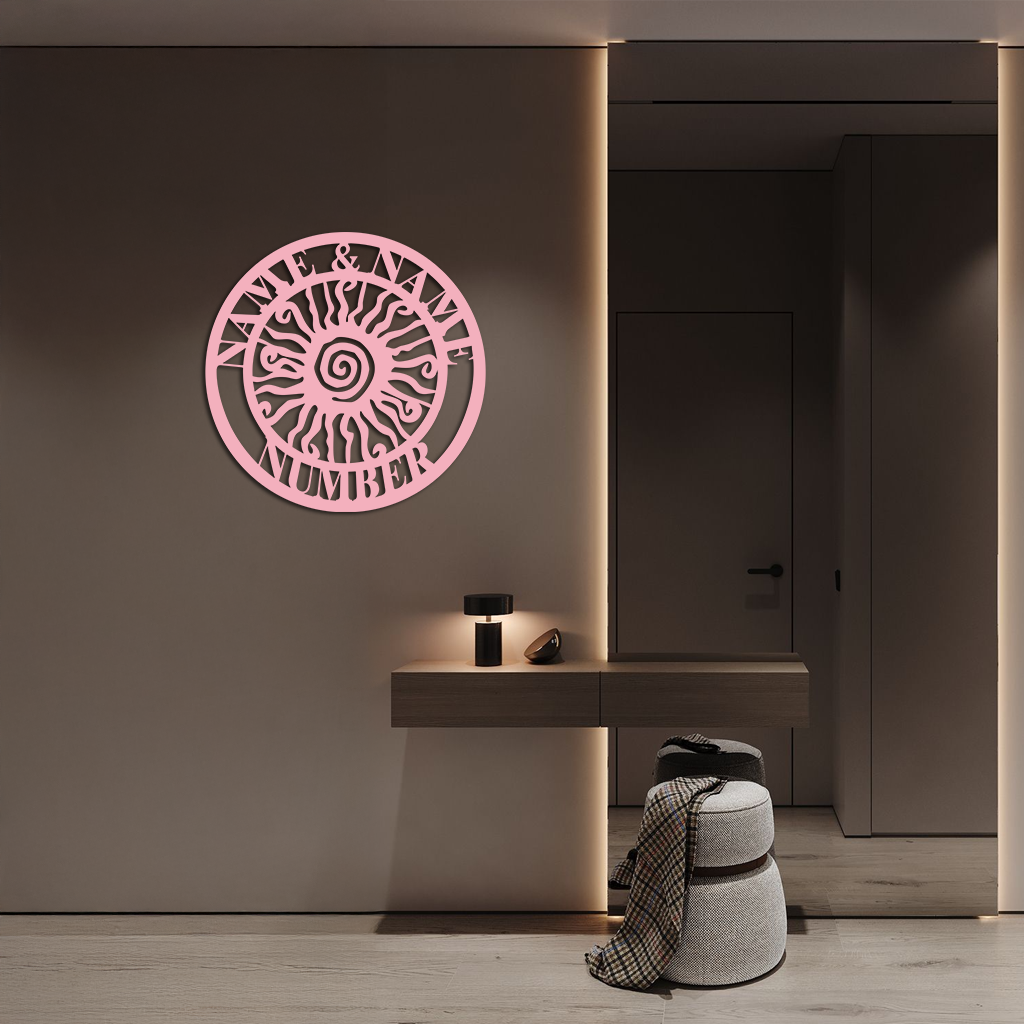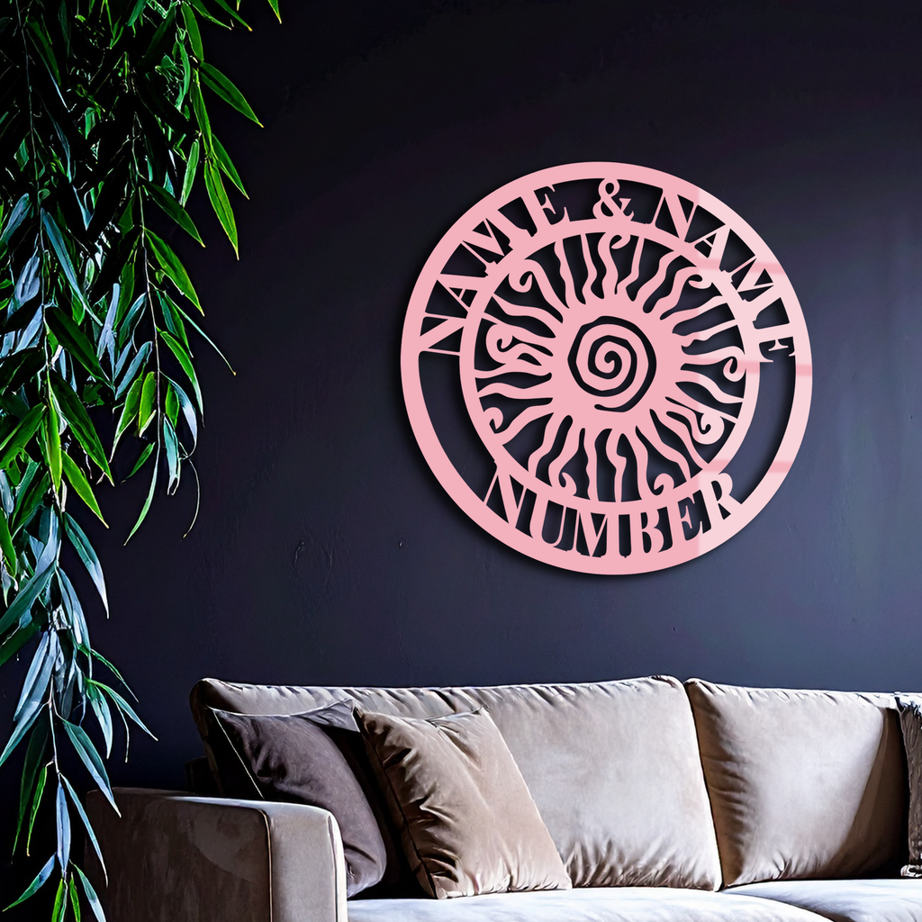 Bring a bold and unique touch to your home exterior or garden with this Personalized Sun Spiral Metal Wall Art. Featuring a radiant spiral sun design surrounded by customizable text for names and numbers, this piece doubles as both decoration and functional signage. Made from premium quality metal with a durable powder-coated finish, itβs designed to withstand outdoor conditions while maintaining its artistic charm. Perfect for customizing your homeβs entrance, garden, patio, or as a thoughtful gift for loved ones.