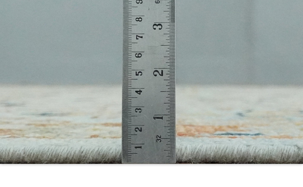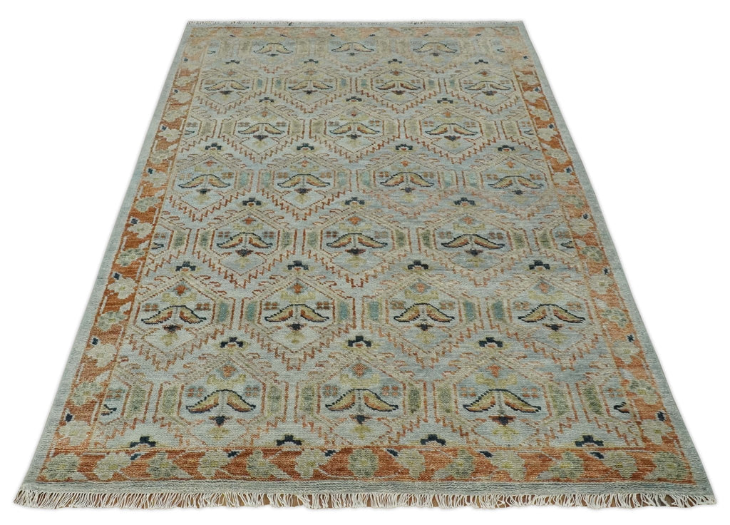 Traditional Floral Ikat Design Silver, Rust and Green Hand knotted 6x9 wool Area Rug
