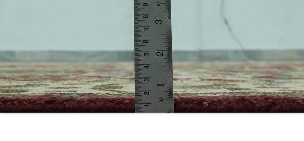 This exquisite rug features a rich tapestry of deep burgundy interwoven with lush greens and intricate cream accents, creating a visually dynamic landscape. The ornate floral motifs evoke a sense of grandeur and elegance, reminiscent of Persian artistry. Its plush, hand-knotted texture delivers both luxury and comfort underfoot. Encased by a delicate border, this masterpiece is perfect for those seeking to elevate their living space with an unparalleled blend of culture and sophisticated style.