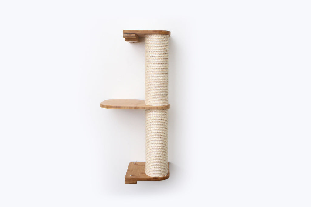 The Scratching Pole is a must-have for any Cat Wall! Scratching is a natural behavior for cats and is crucial for cat health. A Sisal Pole is the perfect solution for a cat’s scratching and climbing needs. You can add mobility with our Scratching Pole Leaf Shelves. These Leaf Shelves offer extra options for creating paths up and down the pole for your cat. You can also rotate the Leaf Shelves to create a new and enticing pathway! The Scratching Pole can be installed on its own or incorporated into a larger layout. With its segmented design, you can choose your height. We offer a 2-Tier, 3-Tier, and 4-Tier Scratching Pole.