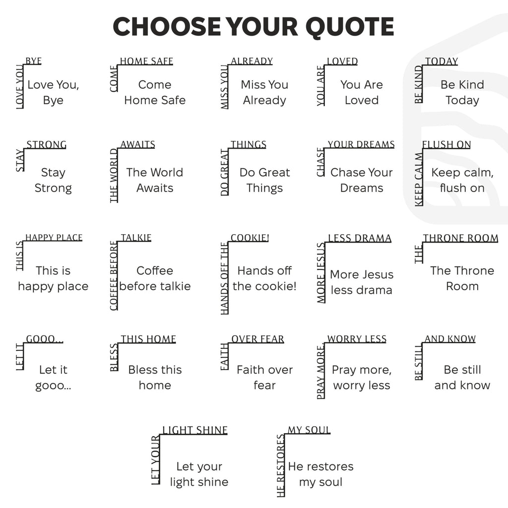 • The mounting process is simplified so you can enjoy the result instantly without hassle. Every inscription is fitted with strong adhesive tape on the back, ensuring quick, clean, and reliable installation without the use of tools. Simply remove the backing and secure your personalized "Custom Quote". Discover more popular and highly-rated items that best highlight your unique style by viewing our collection of Bestsellers.