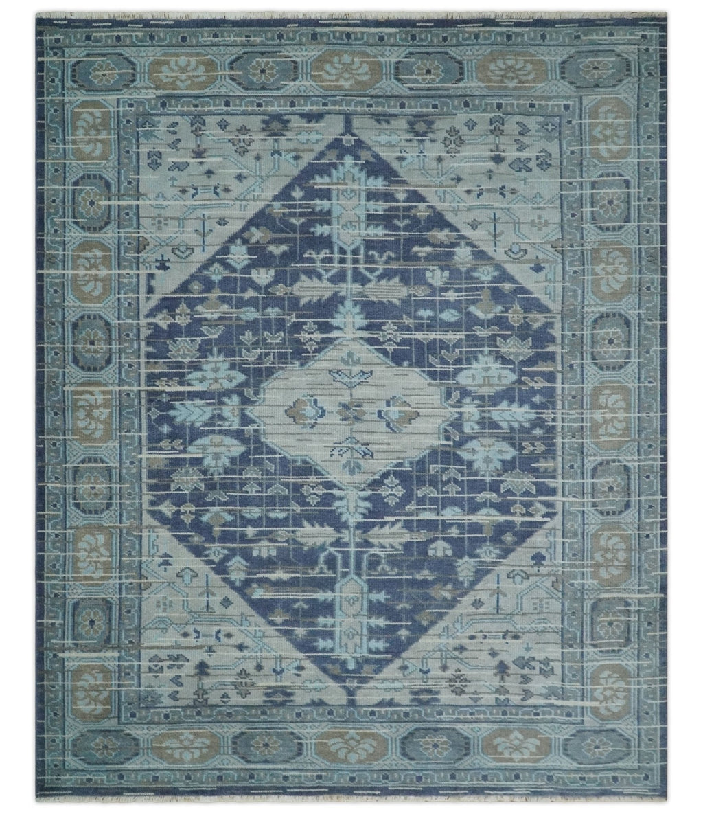 Woolen 8x10 Navy Blue and Beige Traditional Hand Knotted Wool Area Rug