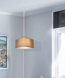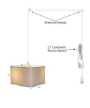 Plug In Swag Pendant - The perfect addition to any dark corner or above a table that the builder didn't provide electrical wiring. You will love your swag pendant light because it can move anywhere and put the light exactly where you need it. Wondering about size? Simply add the length and width of your space and that will give you the maximum bottom width of your pendant. If your swag is not centered in the room you should likely use smaller measurements to define the "space" you are lighting up. Why Upgrade to Home Concept Signature Pendants? Top Quality Premium Lampshades means your room will glow with a rich warm luster your guests will notice. Plus we include upgrades like a premium inner lining and quality fabric so your new shade will last for years. Heavy brass and steel frames mean you can feel the difference when you lift it. Exclusive "rounded-corner" square lampshade is uniquely modern for discriminating decorators.