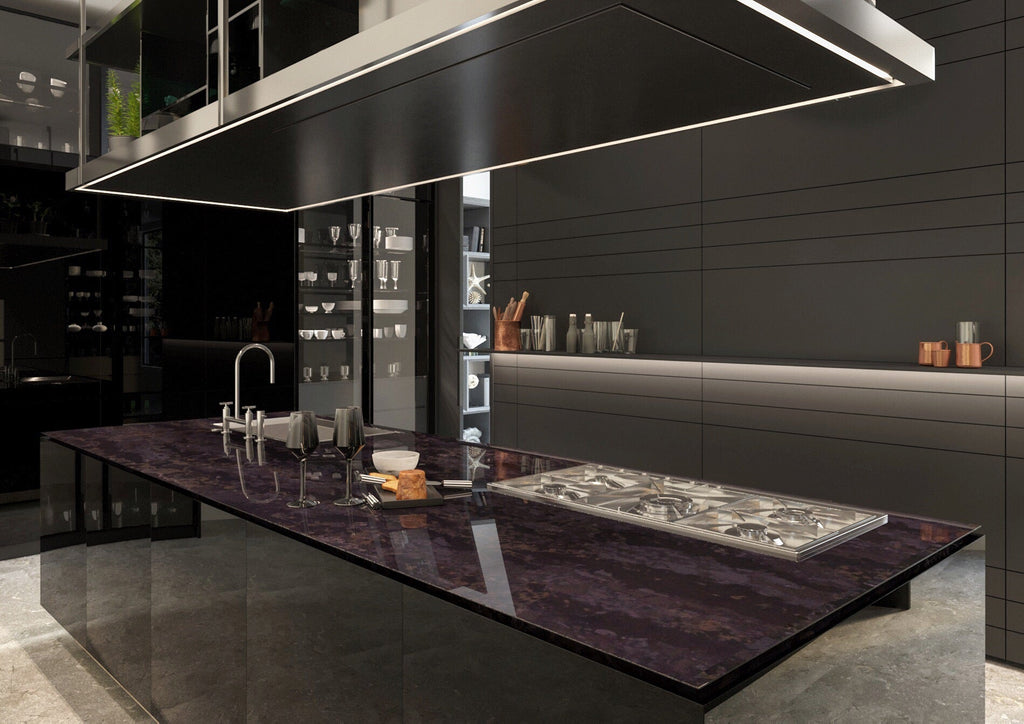 Get lost in the mesmerizing fusion of black and golden iridescent veins with Vicostone Amadeus! This quartz will transport you to a 3D version of the night sky, perfect for those who want to make a bold statement with their unique style.