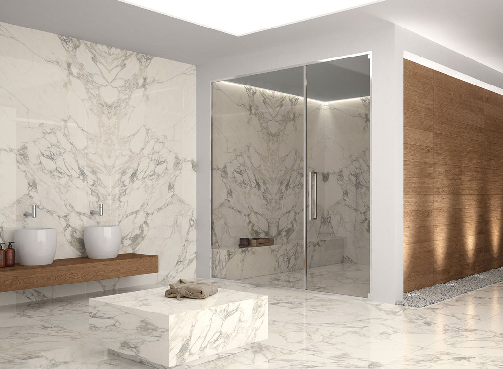 Iris Fiandre Arabescato Maxifine marble is a highly coveted natural stone due to its elegant appearance and centuries-long admiration. Its distinct design features a white background with intricate grey veining, paying tribute to the intricate patterns and designs of Arabesque art and architecture.