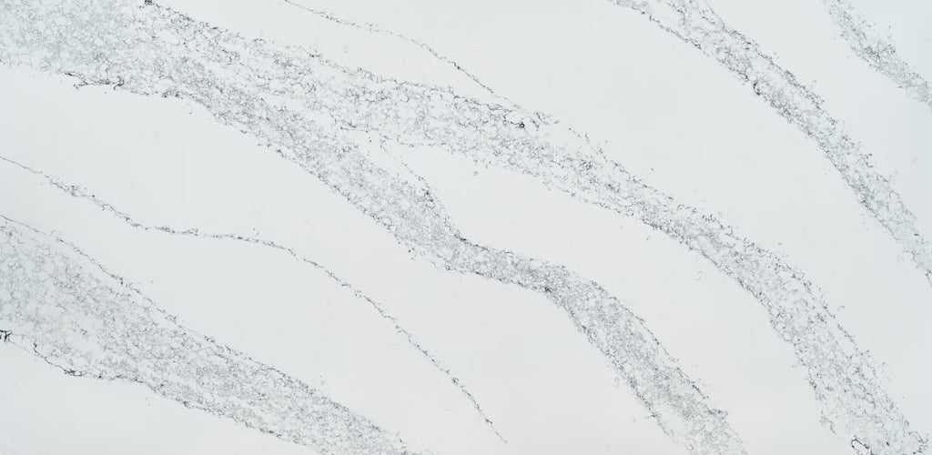 Arctic Drift Tessa Quartz dazzles with its glossy white surface and silky-smooth feel, streaked with bold charcoal veins. Inspired by icy river currents carving through frozen landscapes, this quartz blends a bright, snowy base with dramatic dark lines that create a striking, frosty look. Its eye-catching design sparks creativity, making it a favorite for designers aiming to craft chic and lively spaces, whether at home or in the office.