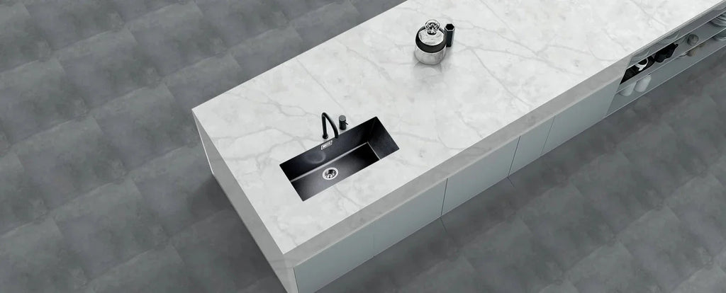 Bianca Perla by Raphael Stone is a graceful quartz surface that embodies the purity of white with a whisper of movement. Featuring a creamy, pearl-toned background and delicate, cloud-like veining, this surface evokes serenity and refinement. Its minimalist elegance makes it a versatile foundation for both classic and modern interiors, offering the timeless look of natural stone with the strength and ease of quartz.