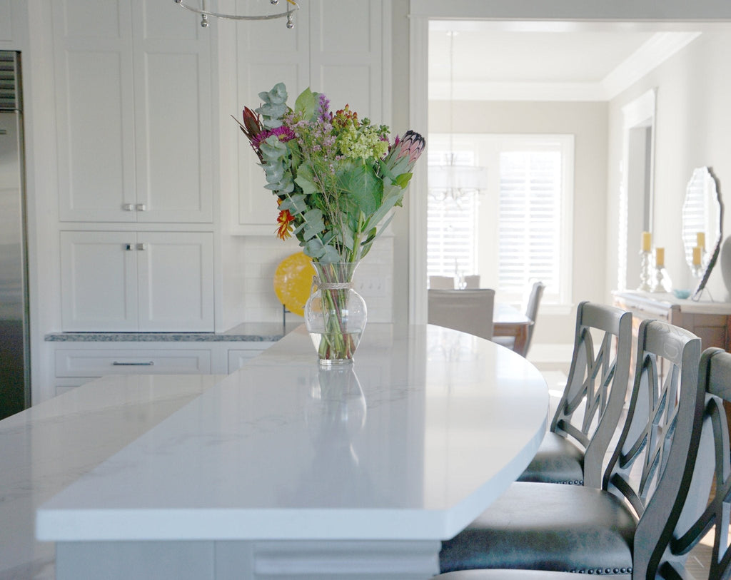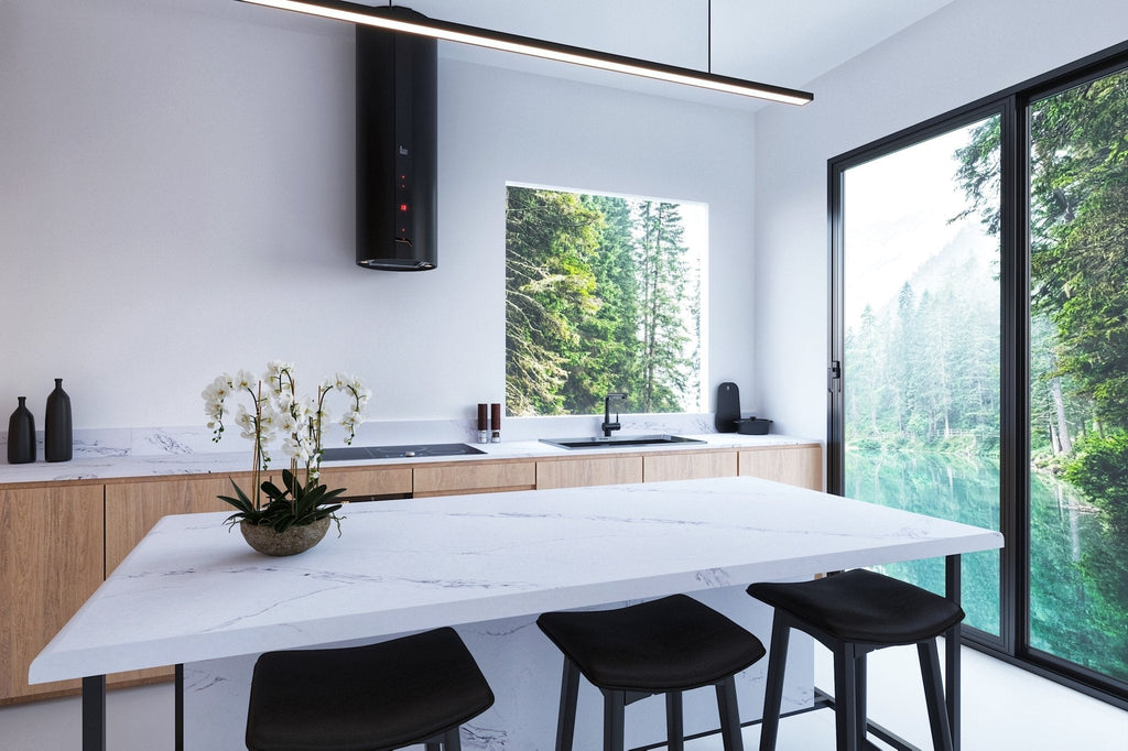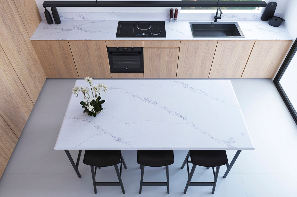 Introducing Borghini Vicostone, inspired by the famous Calacatta marble. The slab features massive stream veins, adding bold movement and textured warmth to your space. Enjoy the subtle transitions of light tones throughout.