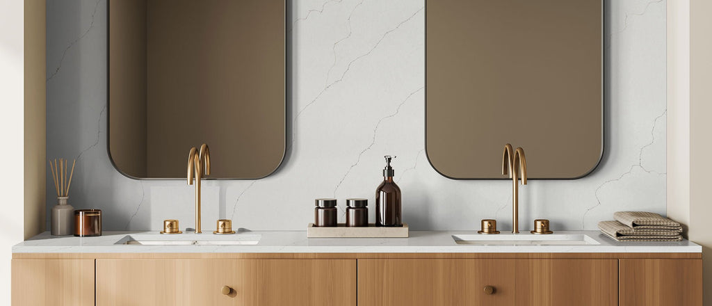 Introducing the timeless elegance of Calacatta Duolina™, where a warm white background plays host to a mesmerizing dance of both gray and gold veins intersecting each other to create a captivating marble-like surface. Whether you're envisioning unique quartz countertops, designing chic kitchen islands, or enhancing your space with elegant backsplashes, Calacatta Duolina™ effortlessly harmonizes with diverse residential and commercial settings.