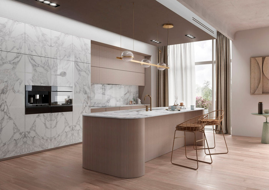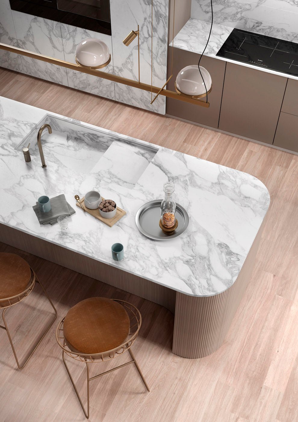 Calacatta Magnifico, created by Infinity Surfaces, is a luxurious porcelain slab known for its elegant aesthetic and unparalleled durability. Its pristine white surface is adorned with striking grey veins, reminiscent of the timeless beauty of natural Calacatta marble.