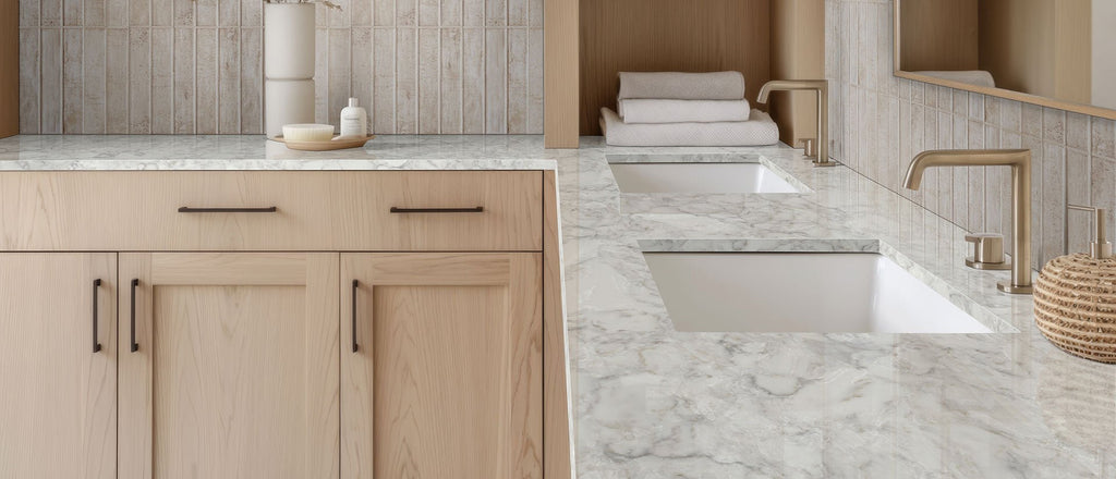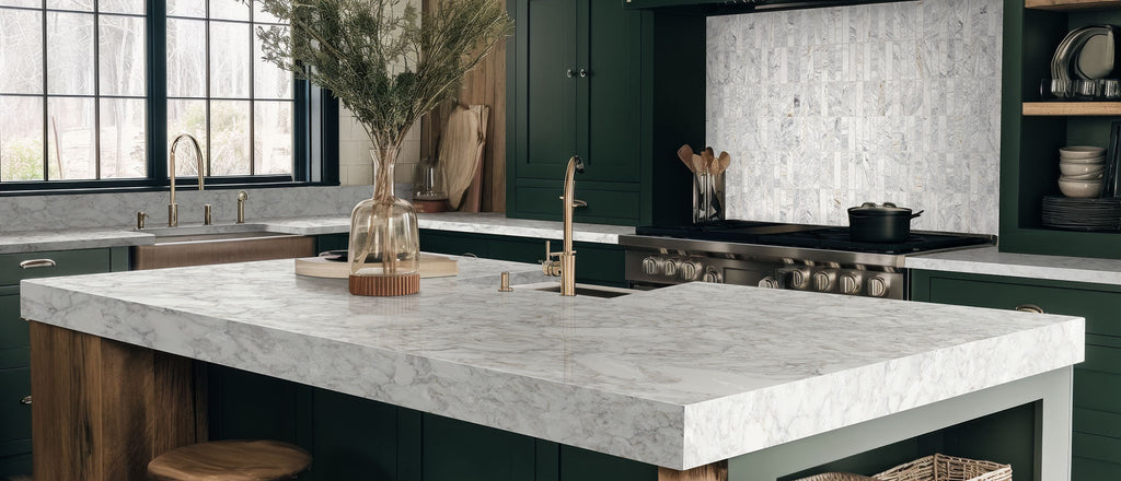 Upgrade your space with the sophisticated charm of Calacatta Ocellio Quartz, showcasing a white and translucent base with charcoal veining and delicate warm and white accents. Featuring advanced patented technology, this quartz authentically replicates cracked veins on a marbled surface, perfect for those who value subtle elegance. It boasts resistance to scratches, chips, and stains, and incorporates MSI’s LumaLuxe® formulation for enhanced light reflection.