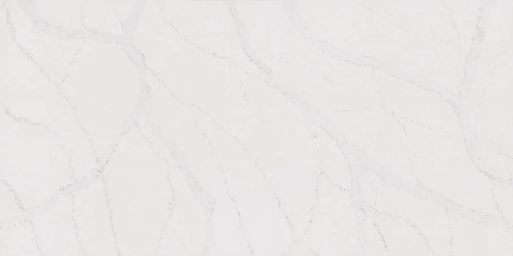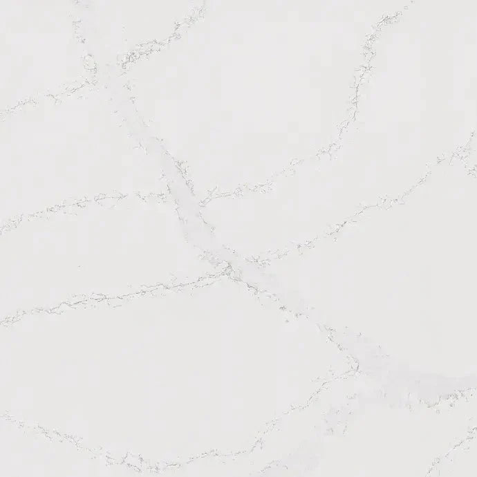 Pamper yourself with the opulence of Wilsonart's Calacatta Serchio, a large-scale marble design. The creamy white background features broad, muted grey veins embellished with delicate, darker striations.