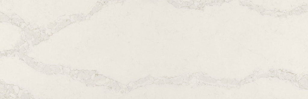 White and Grey Marble-Inspired Quartz Countertop A pristine white foundation adorned with striking veins in soft shades of white and grey, highlighted by flecks of silvery green and warm yellow, creating a tranquil and luxurious atmosphere.