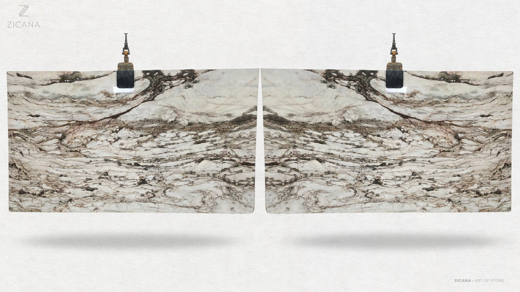 Crema Europa Marble boasts a mostly white base with striking veining in shades of brown and gray that resemble flowing lines or tree bark. These varying patterns add depth and a sense of natural movement to the surface, giving the stone a unique, organic appearance.