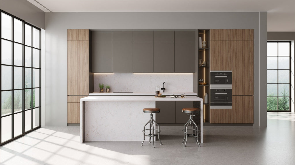 Experience the perfect blend of elegance and nature with Vicostone Denali. Its stunning white marble-look background is adorned with delicate golden veins, adding a touch of warmth to any space. Embrace the outdoors and bring it inside with the cool and creative Denali quartz.