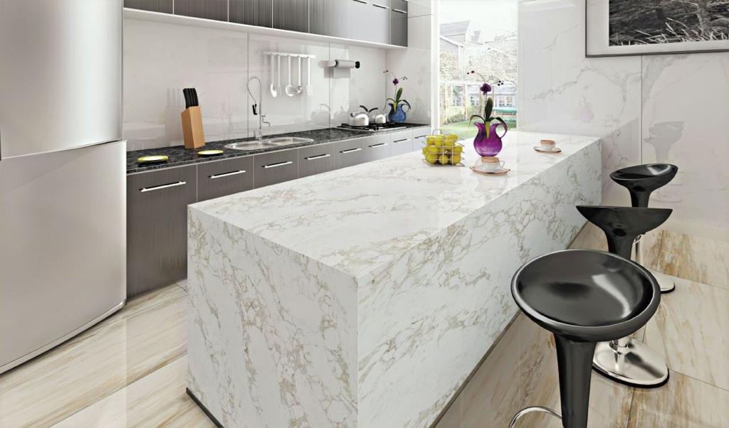 Emerstone Dynamic Gold is inspired by the luxurious aesthetic of Arabescato Gold marble, showcasing a stunning interplay of rich gold and warm beige tones. This exquisite quartz surface features bold, sweeping veins that create a dramatic yet elegant look, perfect for adding a touch of opulence to any design.