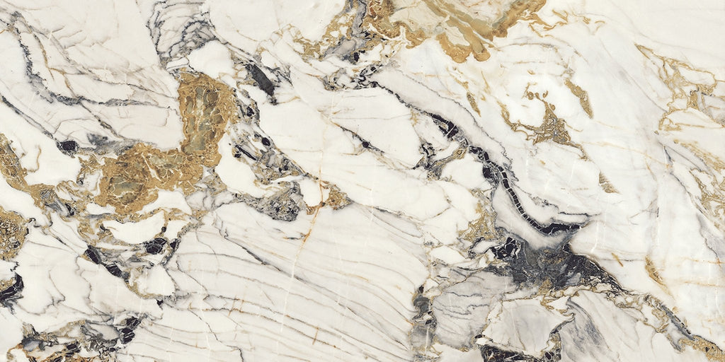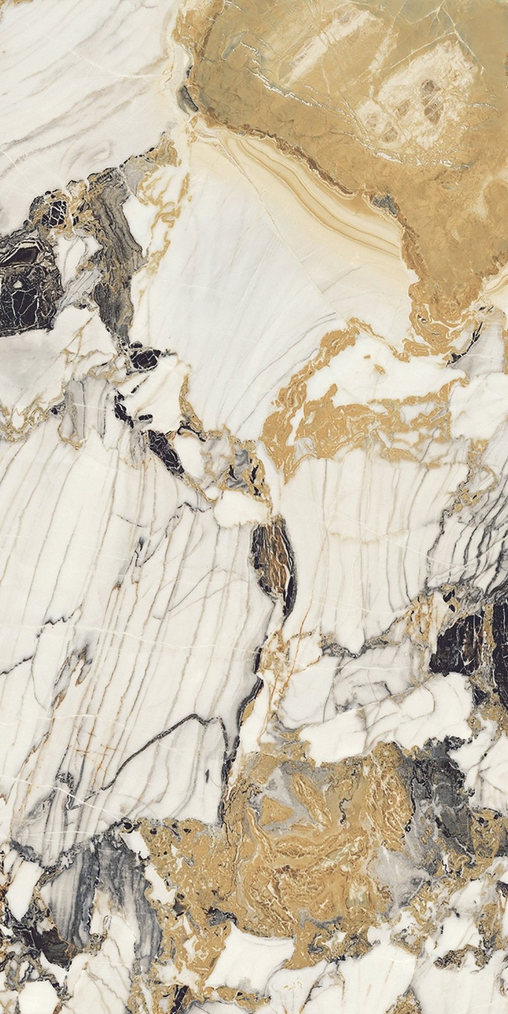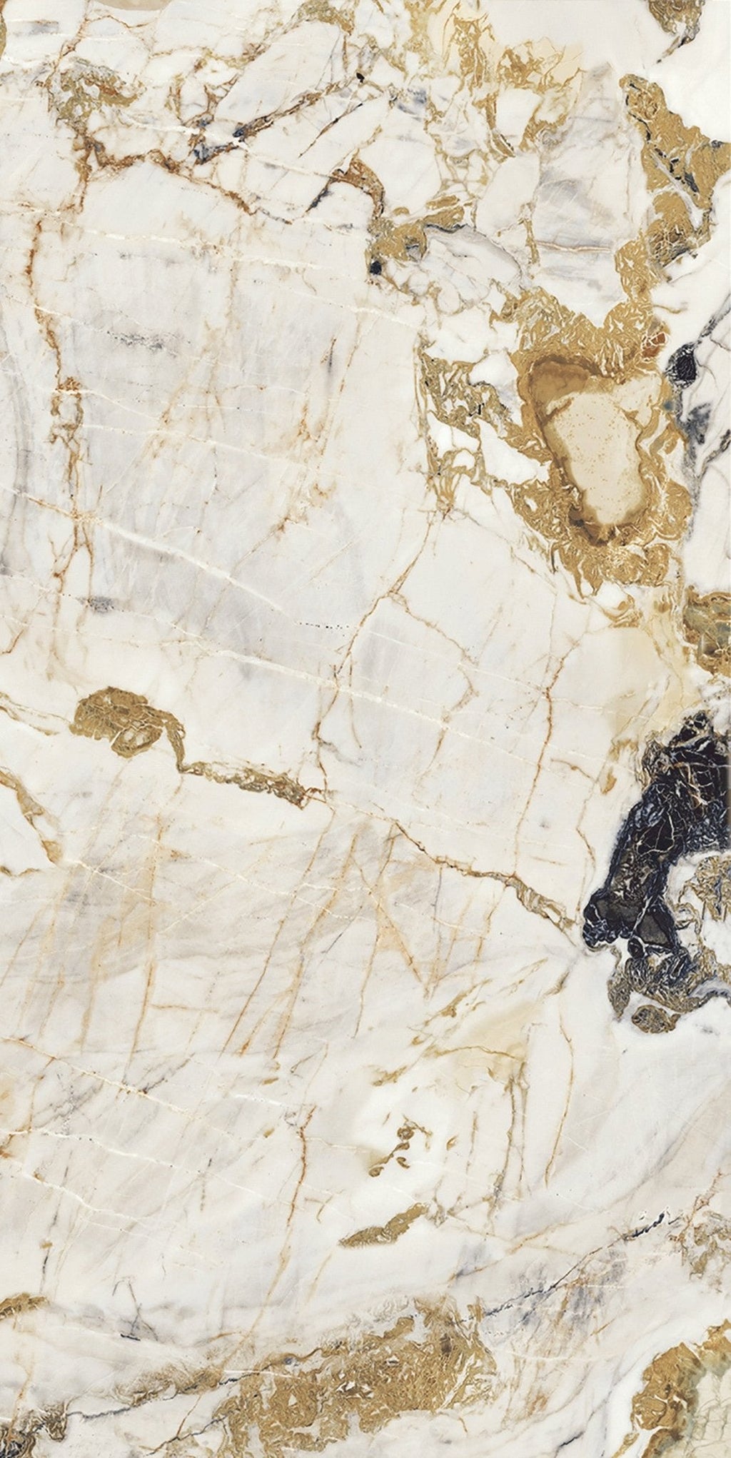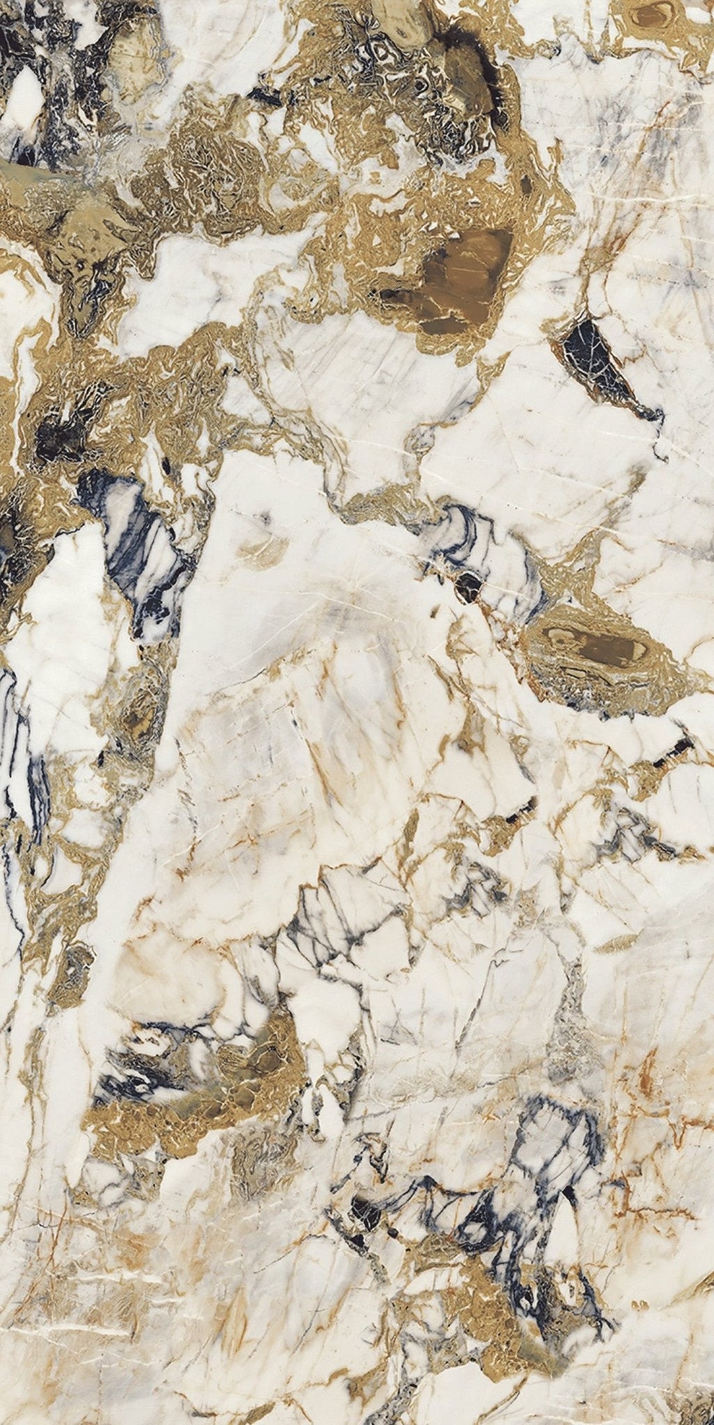 "Etoile Symphonie" marble mesmerizes with its elegant appearance, featuring a creamy beige or ivory background adorned with rich veining in shades of brown, taupe, and gray.