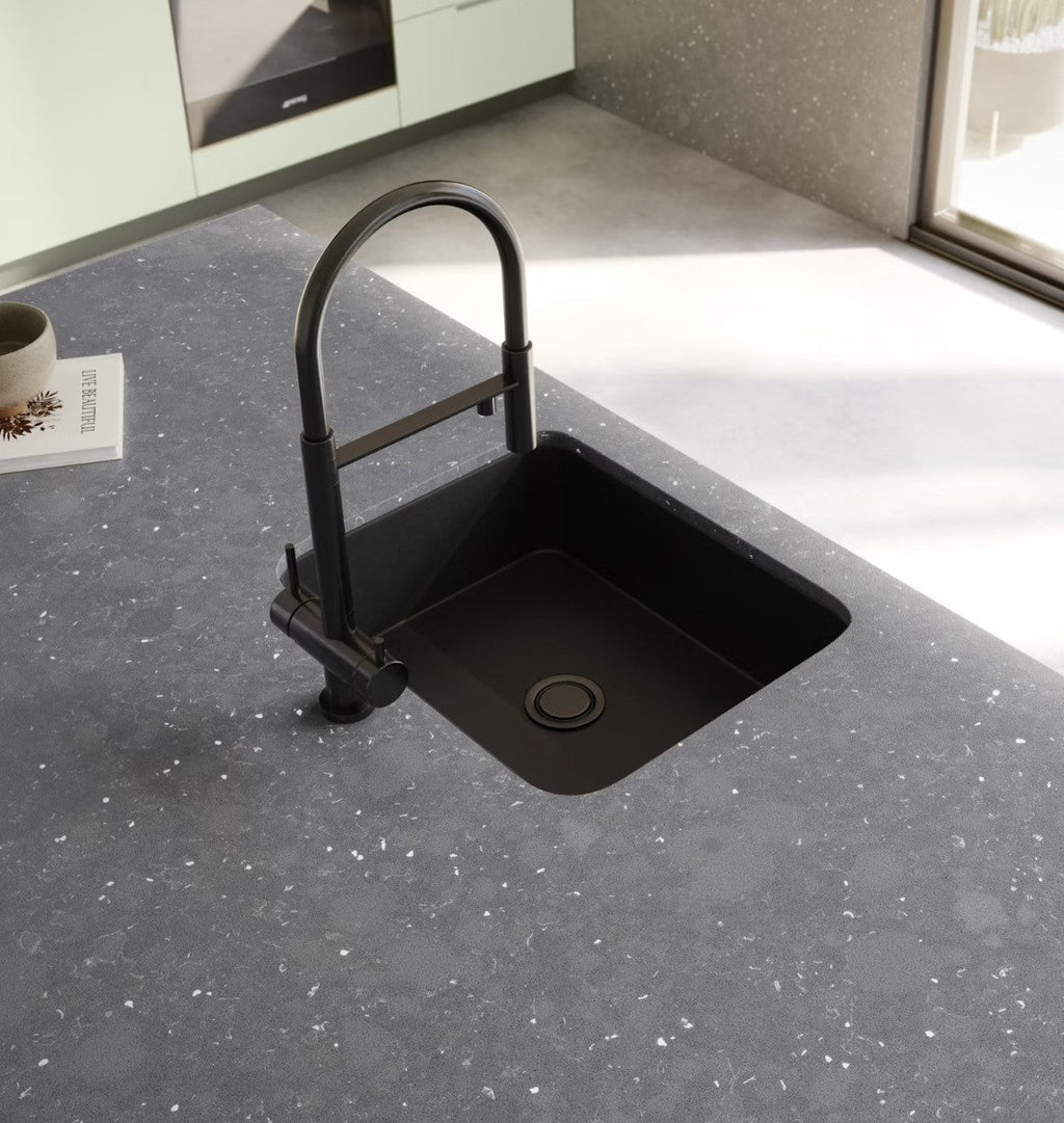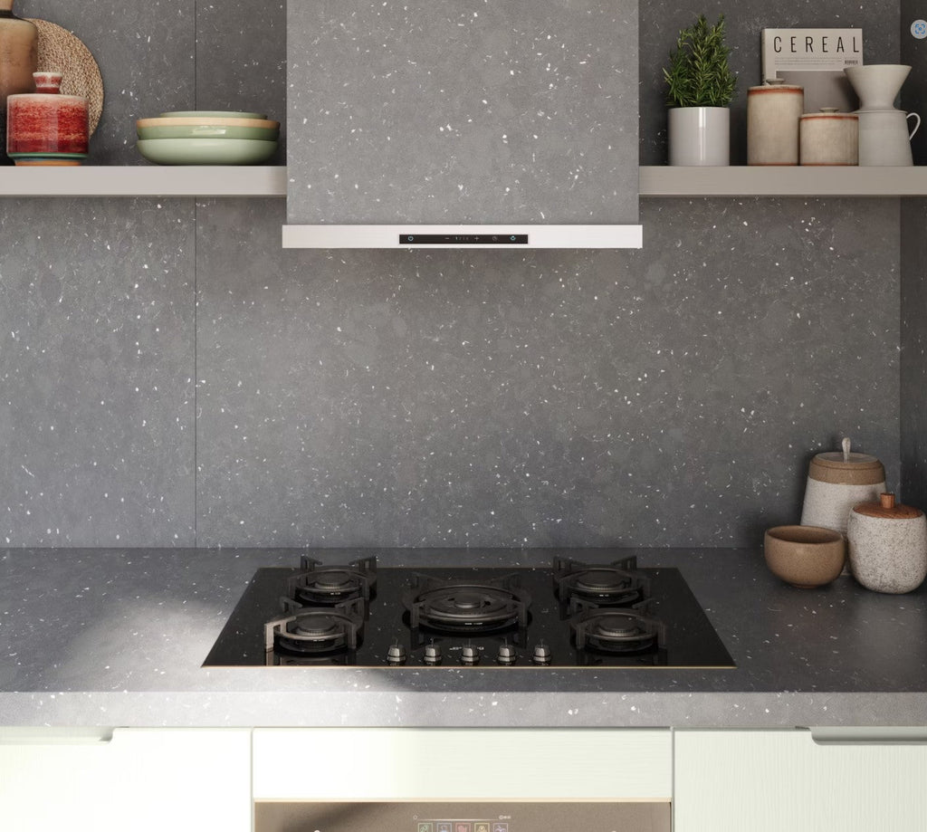 A darker tone of grey elegantly punctuated with white accents, creating a visually attractive contrast. A shade of grey with a sense of modernity and minimalism.