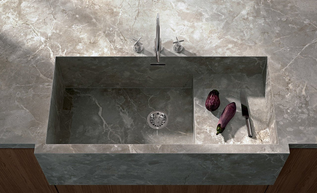 Discover the magic of "Fior di Bosco" porcelain tile from Fondovalle's Infinito 2.0 collection. With its refined grey backdrop and delicate veining, this slab effortlessly replicates the timeless beauty of natural marble. Perfect for elevating any interior space.