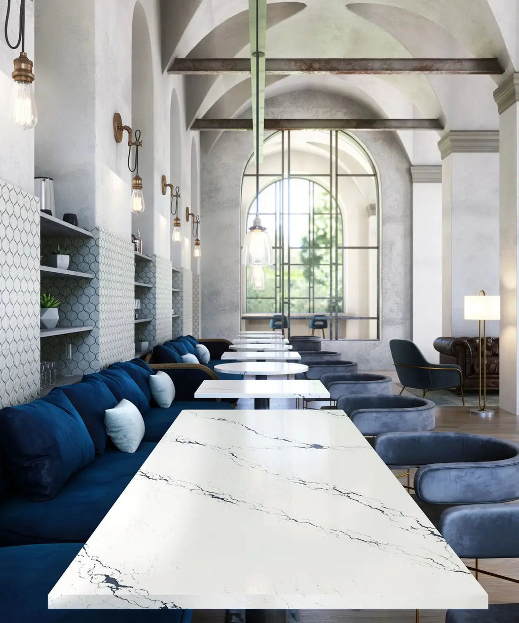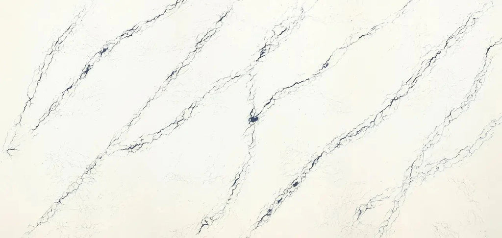 Deep denim blue veins fracture a cool white canvas with vibrant intensity. Debossed veins contrast a smooth surface, creating a wonderfully organic design with a gently textured appeal.