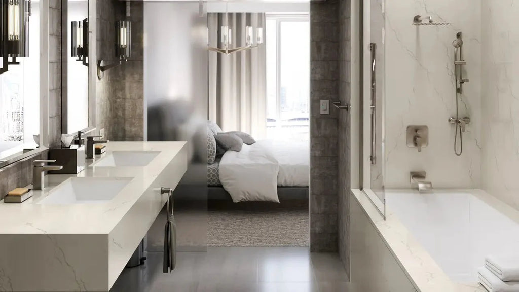 Indulge in the stunning contrast of icy white and warm white veins that dance across the sleek surface of Inverness Frost Cambria. Let the debossed patterns create a mesmerizing design, providing a subtle yet alluring texture that will elevate any space.