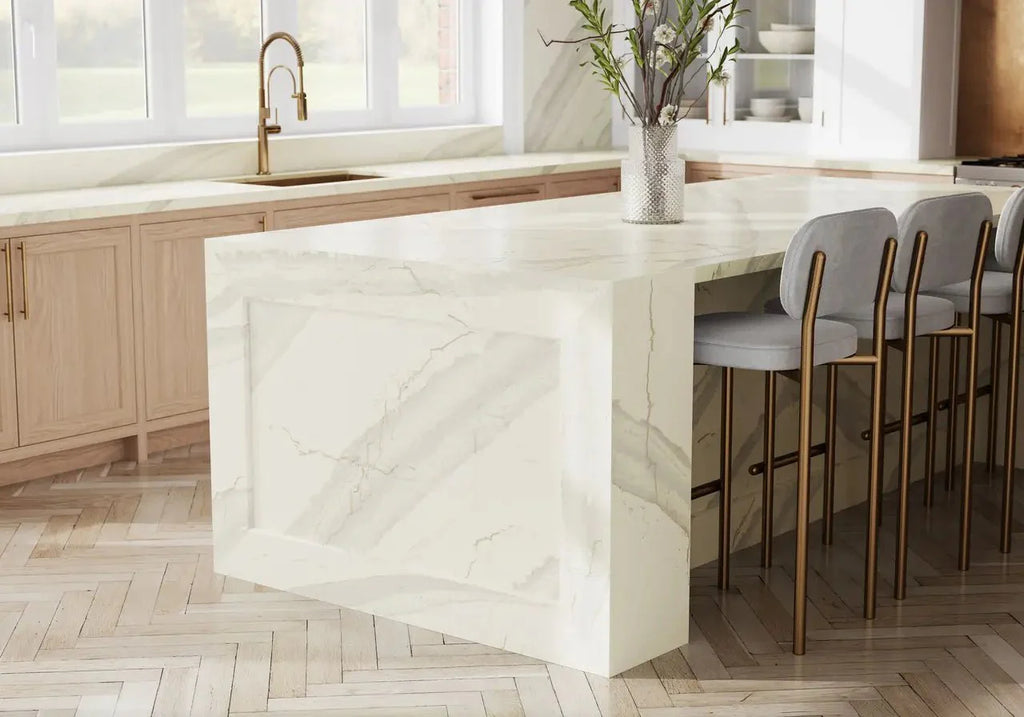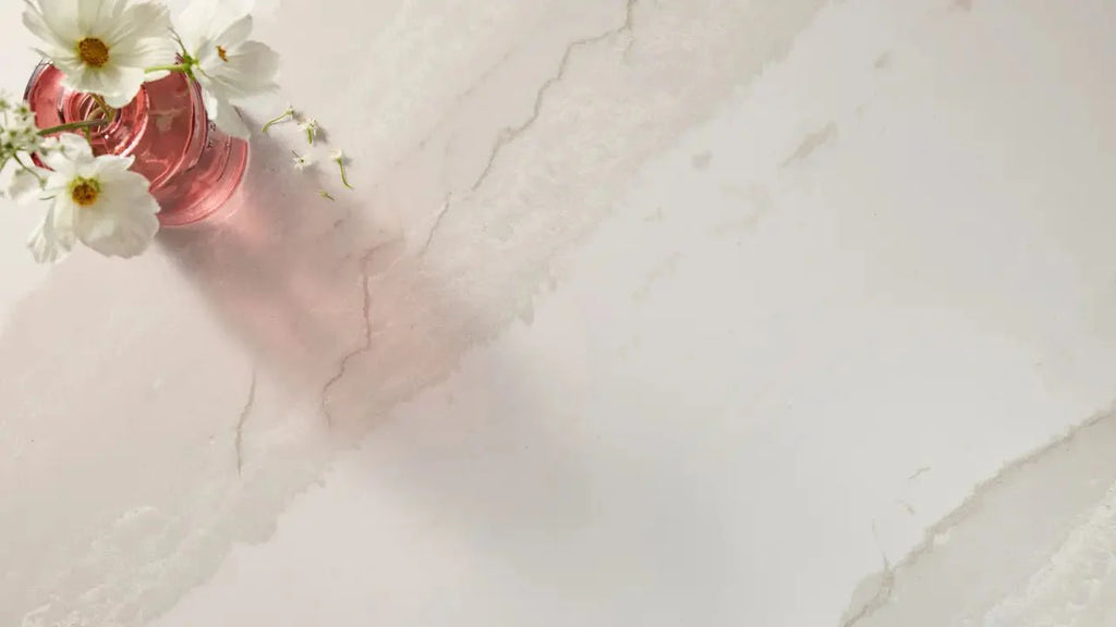 An iconic Cambria colorway guides this exploration into a tonal white, marbled design that dares to go bolder. The merging of neutral tones, debossed Inverness™ veins, and smooth textures creates an artfully combined, warm-meets-cool design with undeniable sensory interest.