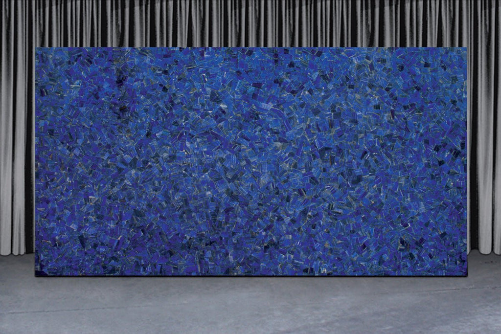 Lapis Lazuli gemstone slabs are prized for their deep blue hue, speckled with golden pyrite and white calcite inclusions. These luxurious slabs are made from the semi-precious stone Lapis Lazuli, renowned for its historical significance and timeless beauty. Often associated with royalty and spirituality, Lapis Lazuli adds a touch of elegance and opulence to any space.