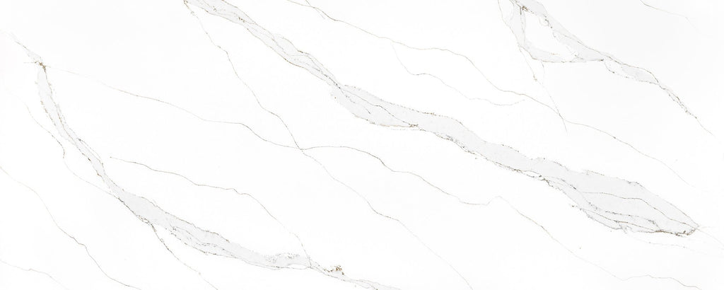 Luxury Vagli Oro, part of Compac’s Luxury Collection, features a luminous white background with bold grey and gold veining, reminiscent of the intricate patterns found in natural Calacatta Vagli marble. The design captures the essence of natural stone while providing the benefits of engineered quartz, such as enhanced durability and ease of maintenance .